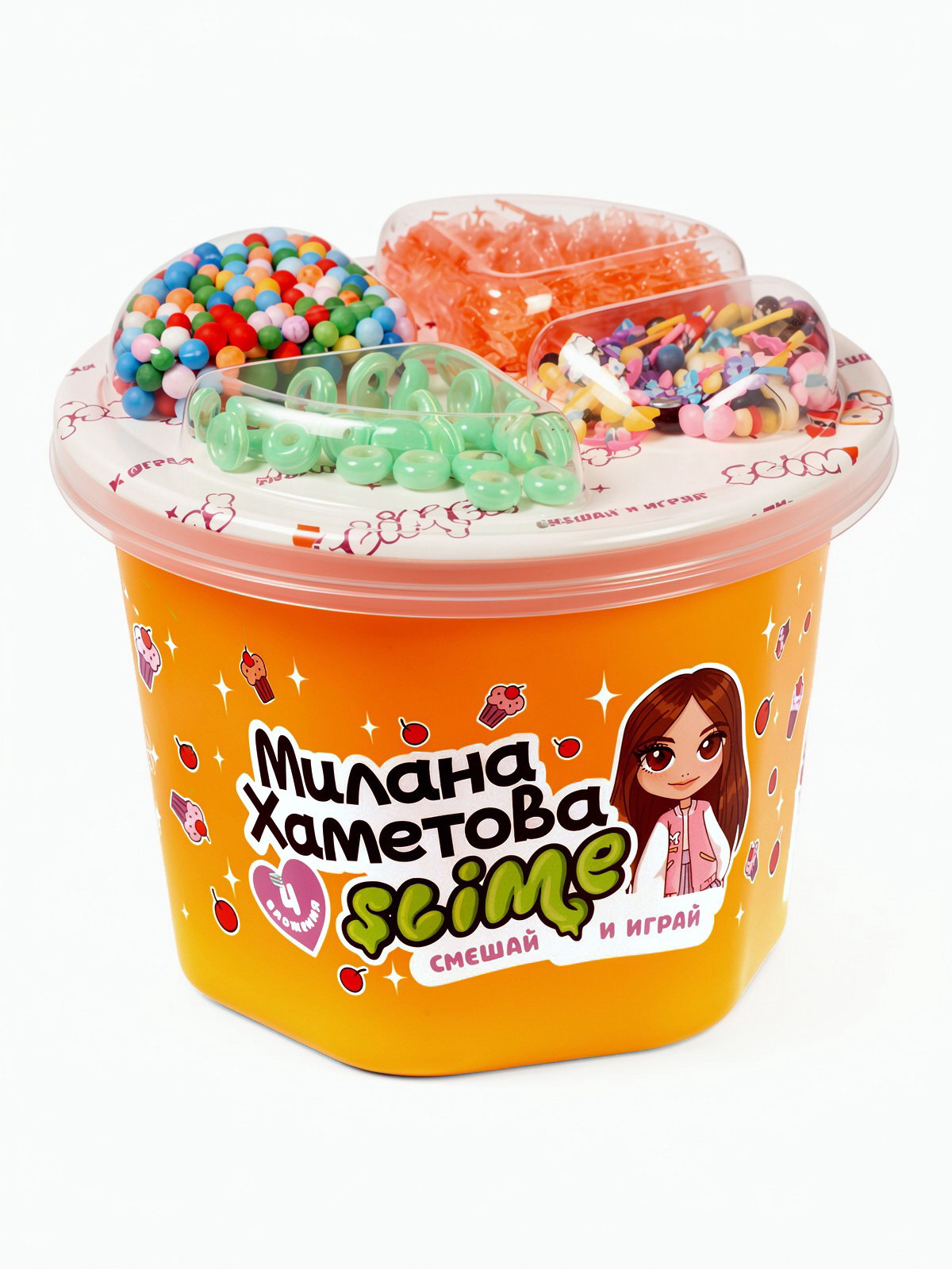 Слайм "Милана Хаметова. Смешай и играйм, 4 вложения, оранжевый, Волшебный мир, Россия