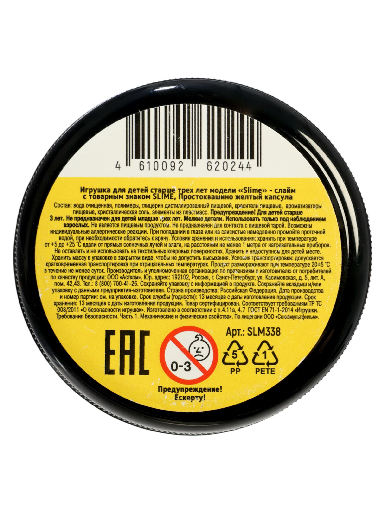 Размер упаковки: 6 x 8 x 6 см. tnved: 9503010000 Температурное ограничение: Нет Для кого: Унисекс Вес, г: 130 Цвет: Жёлтый Возраст: От 3 лет Особенности: Без особенностей Вид: Слаймы Слайм "Простоквашино", жёлтый, капсула это яркая антистресс-игрушка для детей, оформленная в стиле любимого мультфильма. Баночка-капсула с изображением Шарика из "Простоквашино" сразу привлекает внимание и делает игру ещё интереснее для ребёнка, которому нравятся знакомые герои. Жёлтый цвет выглядит ярко и позитивно, а сам слайм подходит для спокойного досуга и небольших игровых пауз. Слайм приятно разминать в руках, растягивать и использовать как игрушку для переключения внимания. Формат капсулы удобен для хранения, а узнаваемое оформление с героем мультфильма добавляет игре настроение и делает товар особенно привлекательным для маленьких поклонников "Простоквашино". Особенности