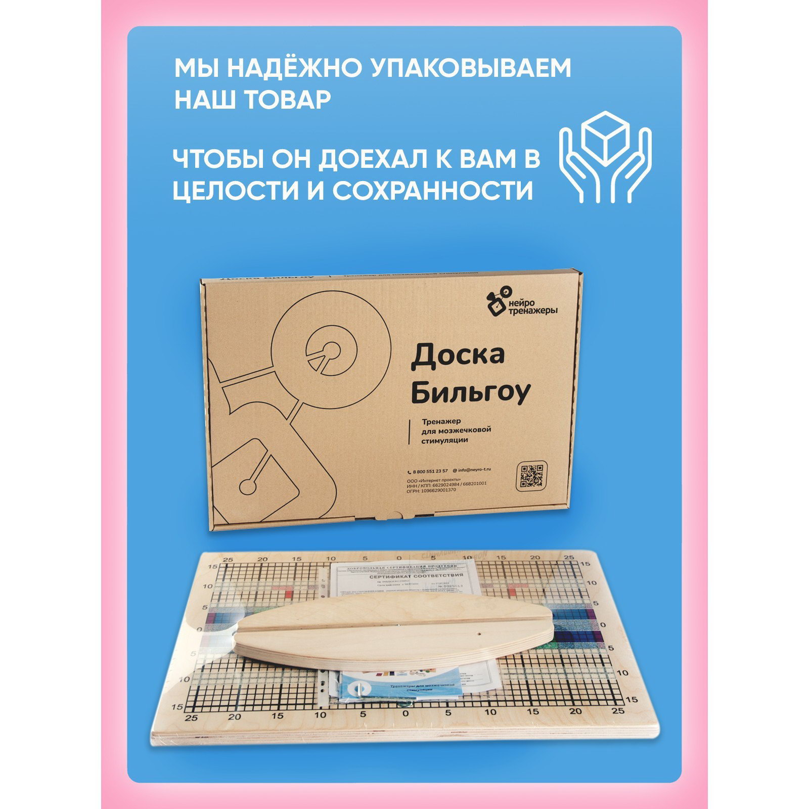 Размер упаковки: 37 x 4 x 59 см. Развитие навыков: Координация Для кого: Унисекс Количество элементов: 1 tnved: 9503007000 tnved: 9503007000 Рисунок: Да Maксимальная нагрузка, кг: 150 Коврик в комплекте: Нет Цвет: Бежевый Температурное ограничение: Нет Вид головоломки: Балансир Возраст: От 3 лет Методики обучения: Фрэнк Бильгоу Доска Бильгоу это тренажёр для стимуляции мозжечка. Этот отдел головного мозга отвечает за координацию движений. Занятия на балансировочном тренажёре с применением методики Бильгоу помогают улучшить работу мозжечка. Тренировки по методике Бильгоу похожи на увлекательную подвижную игру. Занимаясь на доске, ребёнок учится удерживать равновесие и управлять собственным телом. Тренировки с нейробалансиром способствуют всестороннему развитию ребёнка. Польза нейротренажёра