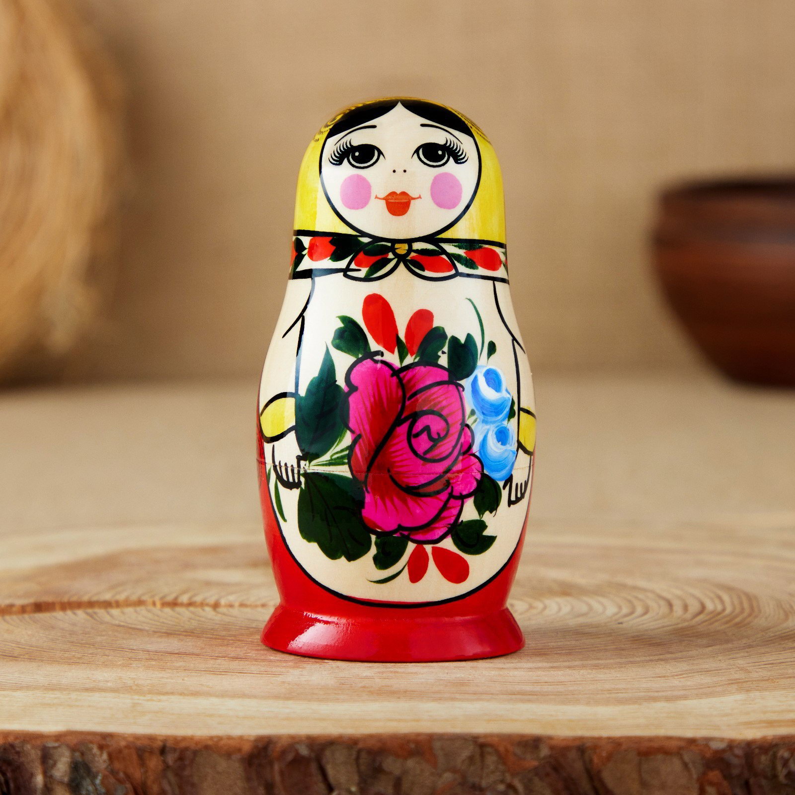 Матрёшка дерево "Семёновская", 5-и кукольная, 10 см, Хохломская роспись, Россия