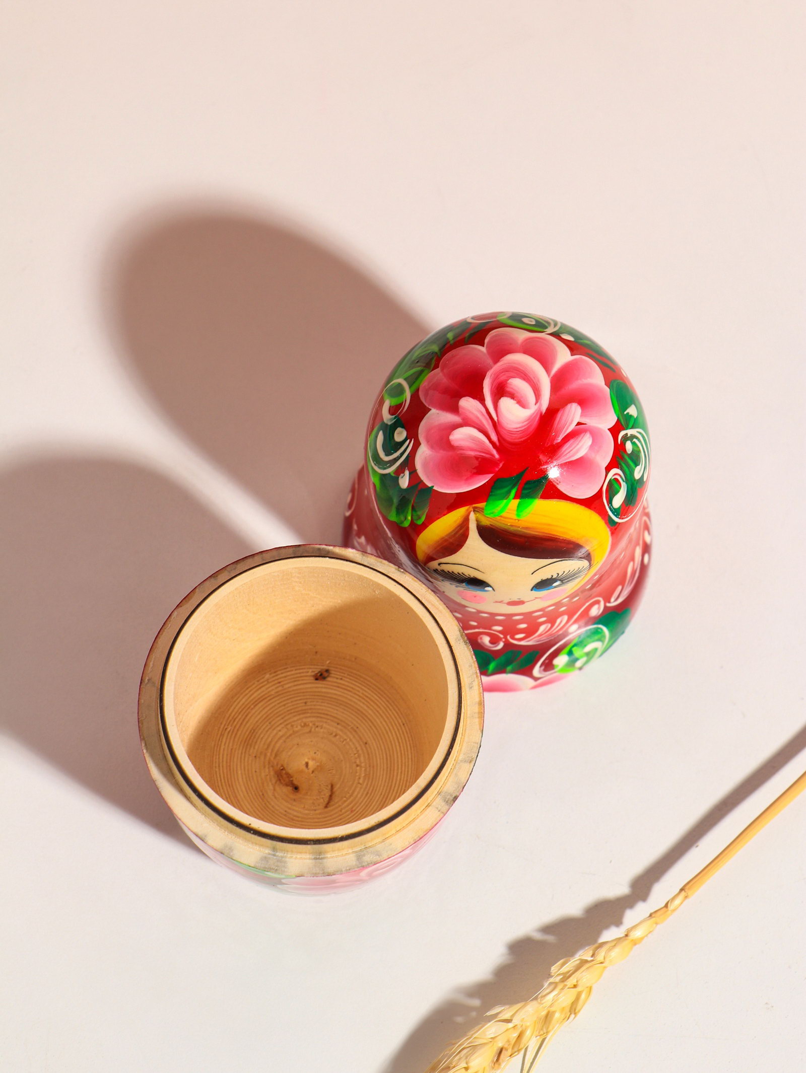 Размер упаковки: 9 x 18.5 x 9 см. tnved: 4420190000 Температурное ограничение: Нет Количество кукол: 5 Высота, см: 18 Вид росписи: Художественная Форма матрёшки: Классическая Возраст: От 3 лет Эта классическая матрёшка в красном платье с розовыми цветами станет особым подарком, хранящим тепло ручной работы. Пять кукол, спрятанных одна в другой, открывают целый мир традиционного искусства для детей и коллекционеров. Особенности