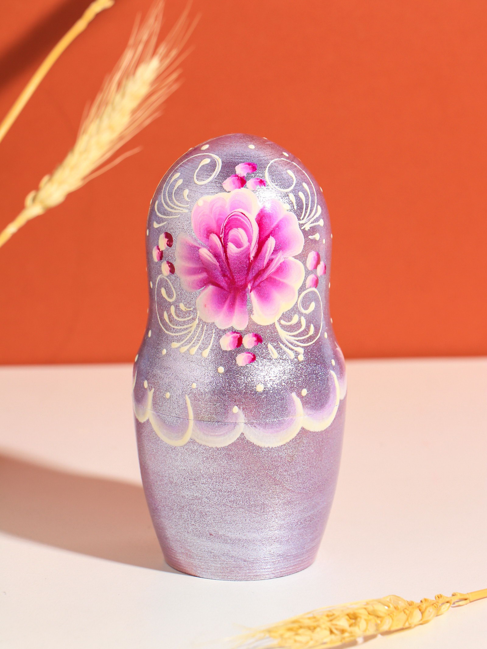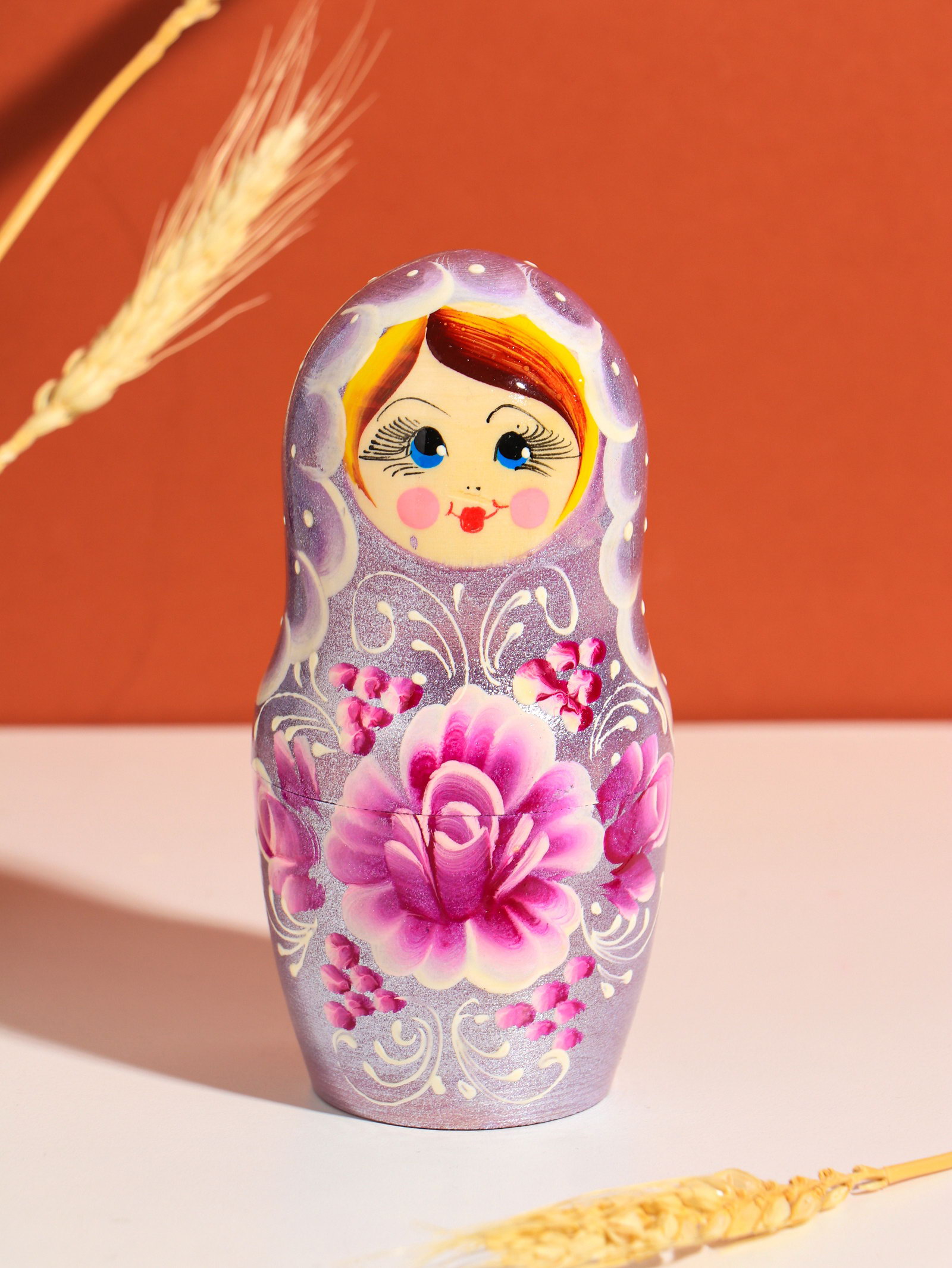 Размер упаковки: 9 x 18.3 x 9 см. tnved: 4420190000 Температурное ограничение: Нет Количество кукол: 5 Высота, см: 18 Форма матрёшки: Классическая Вид росписи: Художественная Возраст: От 3 лет Эта пятиместная матрёшка в классической форме готовый подарок, который хранит тепло рук мастера. Её сиреневый цвет и тонкая художественная роспись создают ощущение нежного летнего рассвета. Игрушка становится первым произведением искусства в коллекции ребёнка, знакомя с традициями через игру и красоту. Особенности