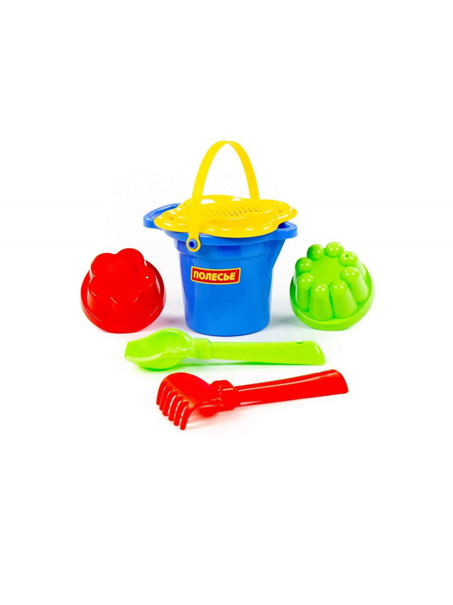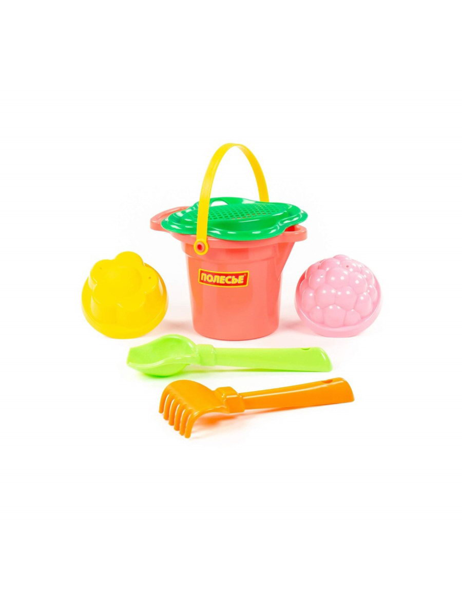 Набор игрушек для песочницы, 6 предметов: ведро, ситечко, совок, грабельки, формочки, МИКС, 10x10x14 см., Полесье, Беларусь