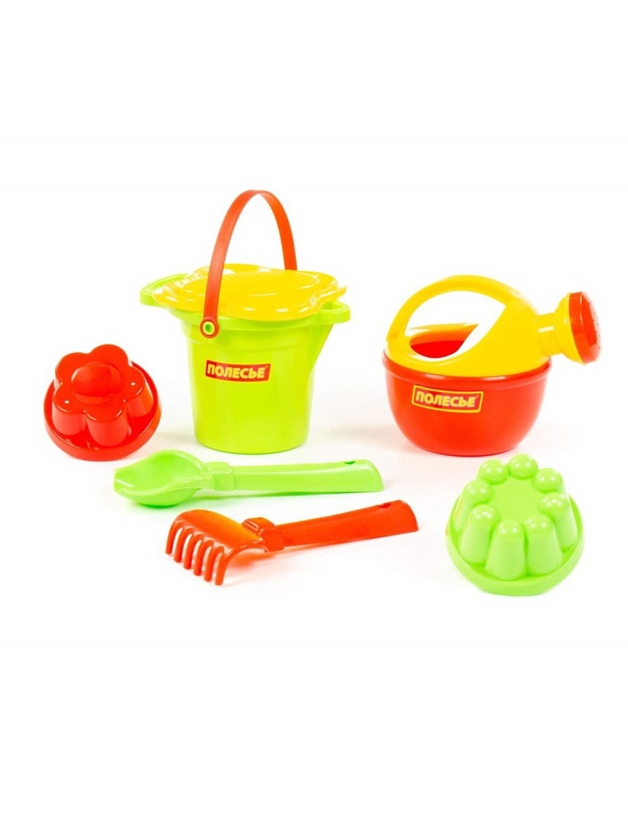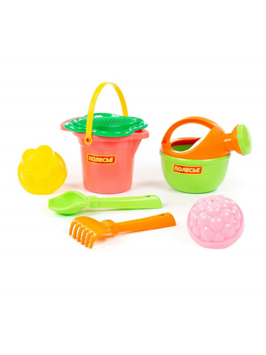 Набор игрушек для песочницы, 7 предметов: ведро, ситечко, совок, грабельки, формочки, лейка, МИКС, 17x17x24 см., Полесье, Беларусь