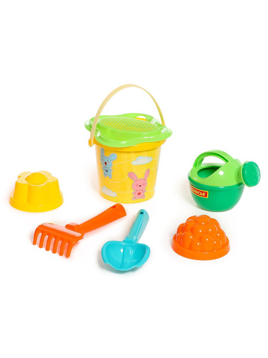 Набор игрушек для песочницы, 7 предметов: ведро, ситечко, совок, грабельки, формочки, лейка, МИКС, Полесье, Беларусь