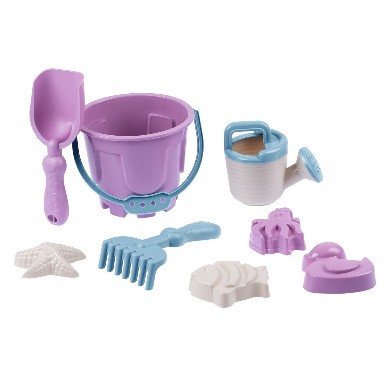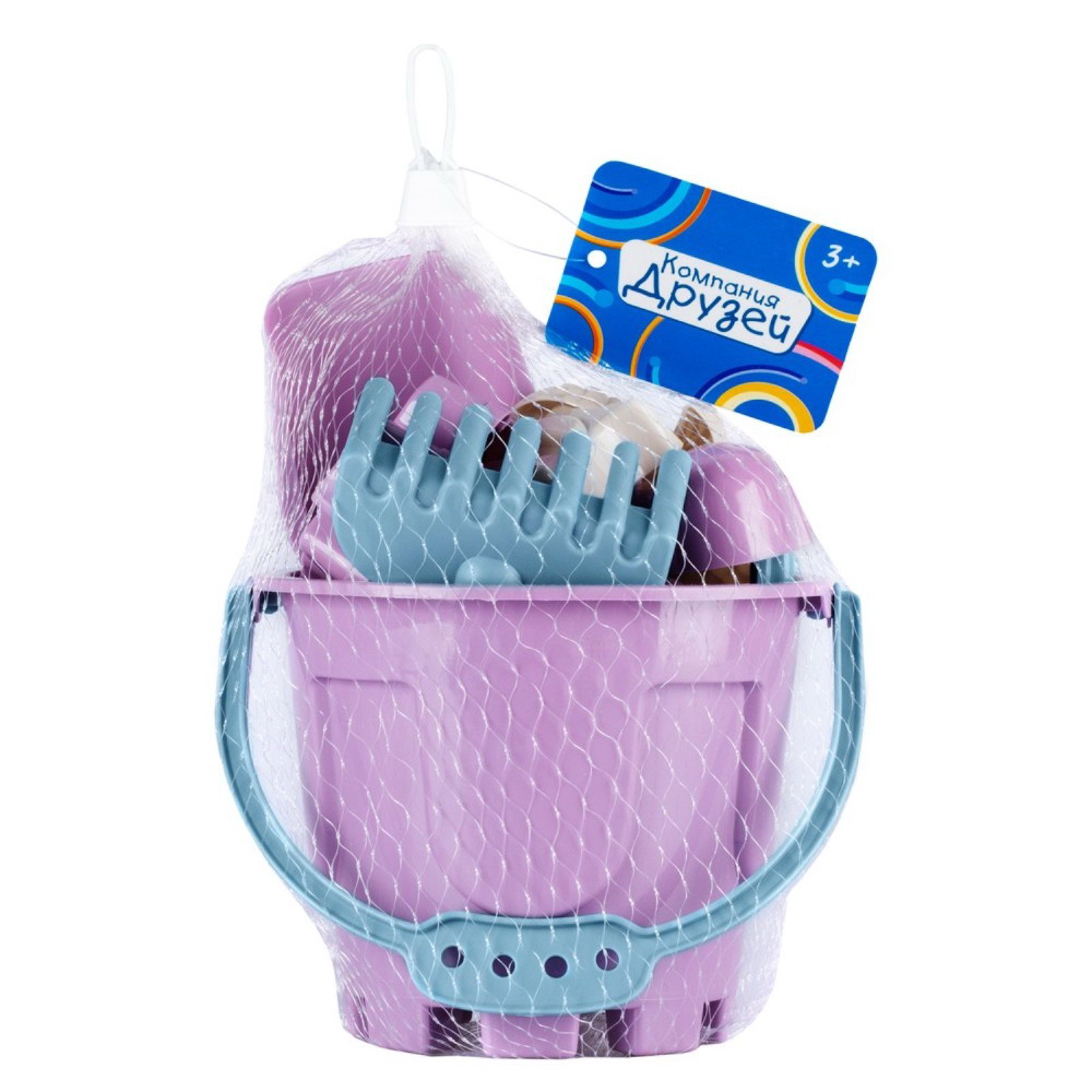 Набор игрушек для песочницы: ведро 1.2 л, лопатка, грабли,4 формочки, лейка 0.2 л, бледно-розовый, Компания Друзей, Узбекистан
