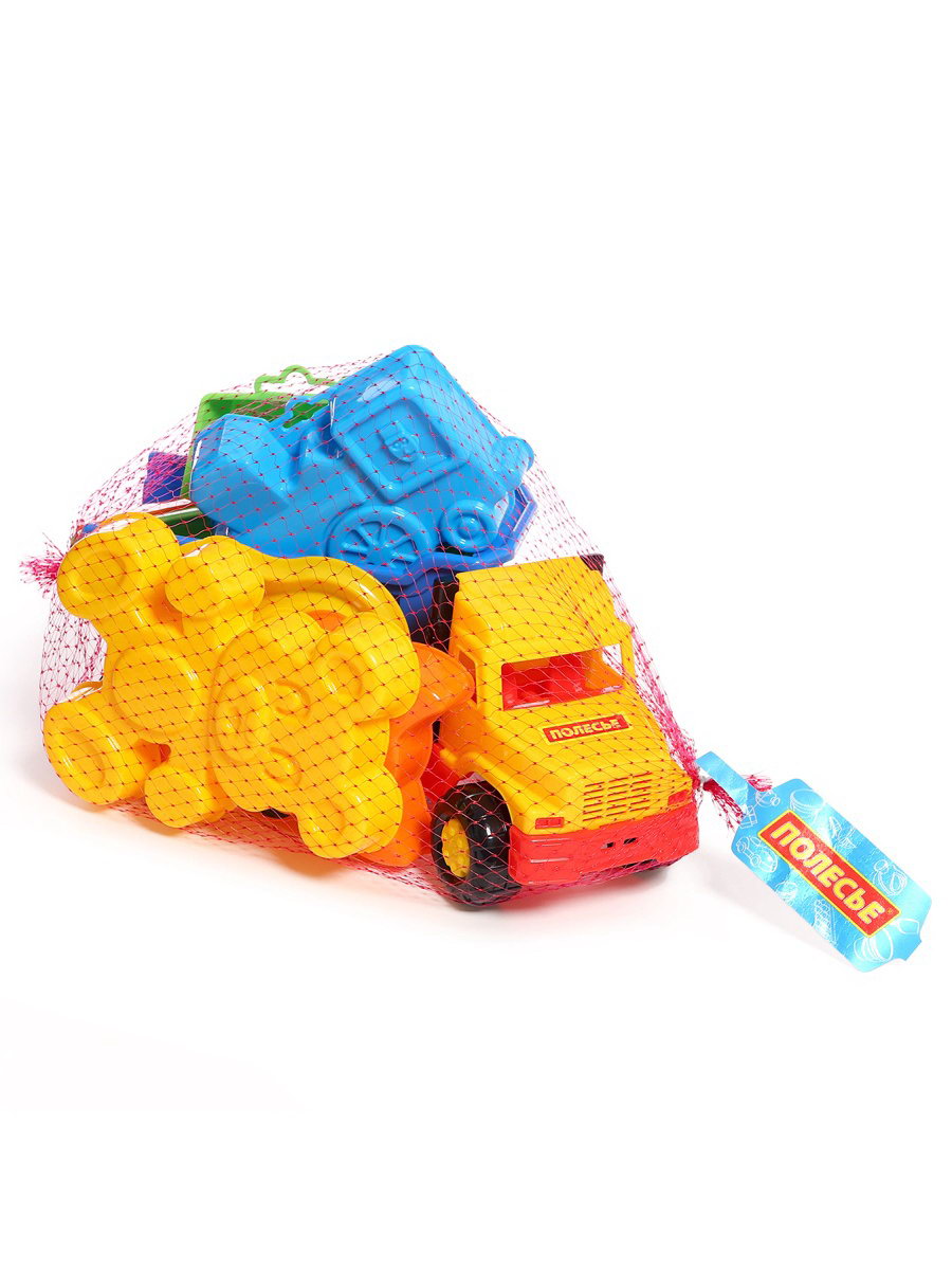 Набор игрушек для песочницы "Фаворит", 8 предметов: самосвал, ситечко, совок, грабельки, формочки, Полесье, Беларусь