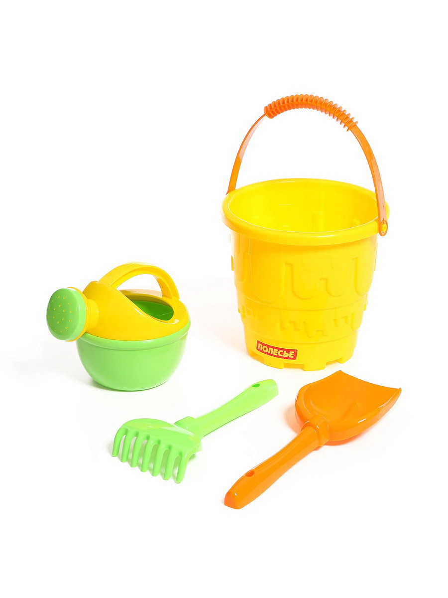 Набор игрушек для песочницы, 4 предмета: ведро, лопатка, грабельки, лейка, МИКС, Полесье, Беларусь