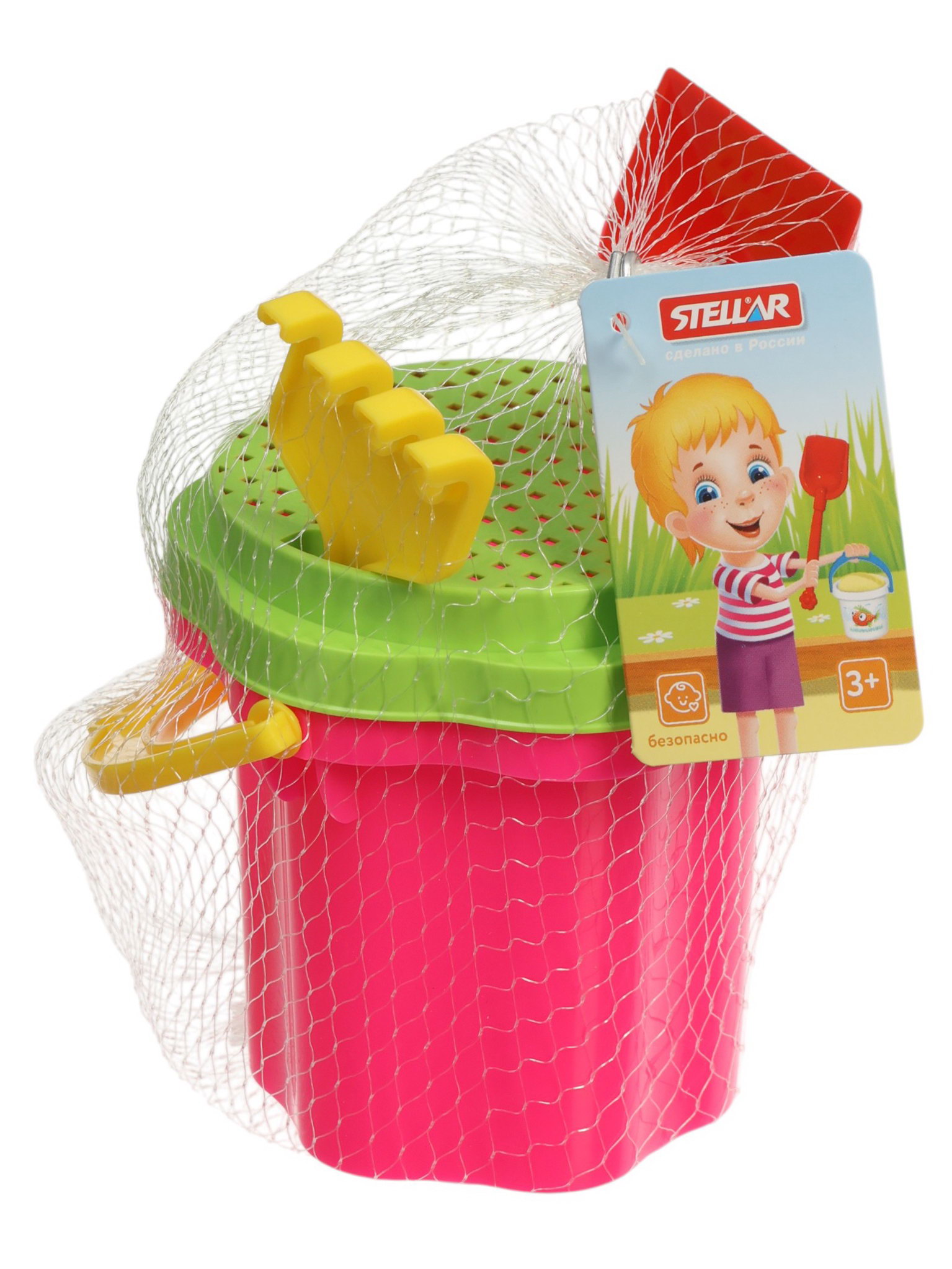 Песочный набор №101 ведро-цветок 0.3 л, сито, грабли, совок, МИКС, STELLAR, Россия