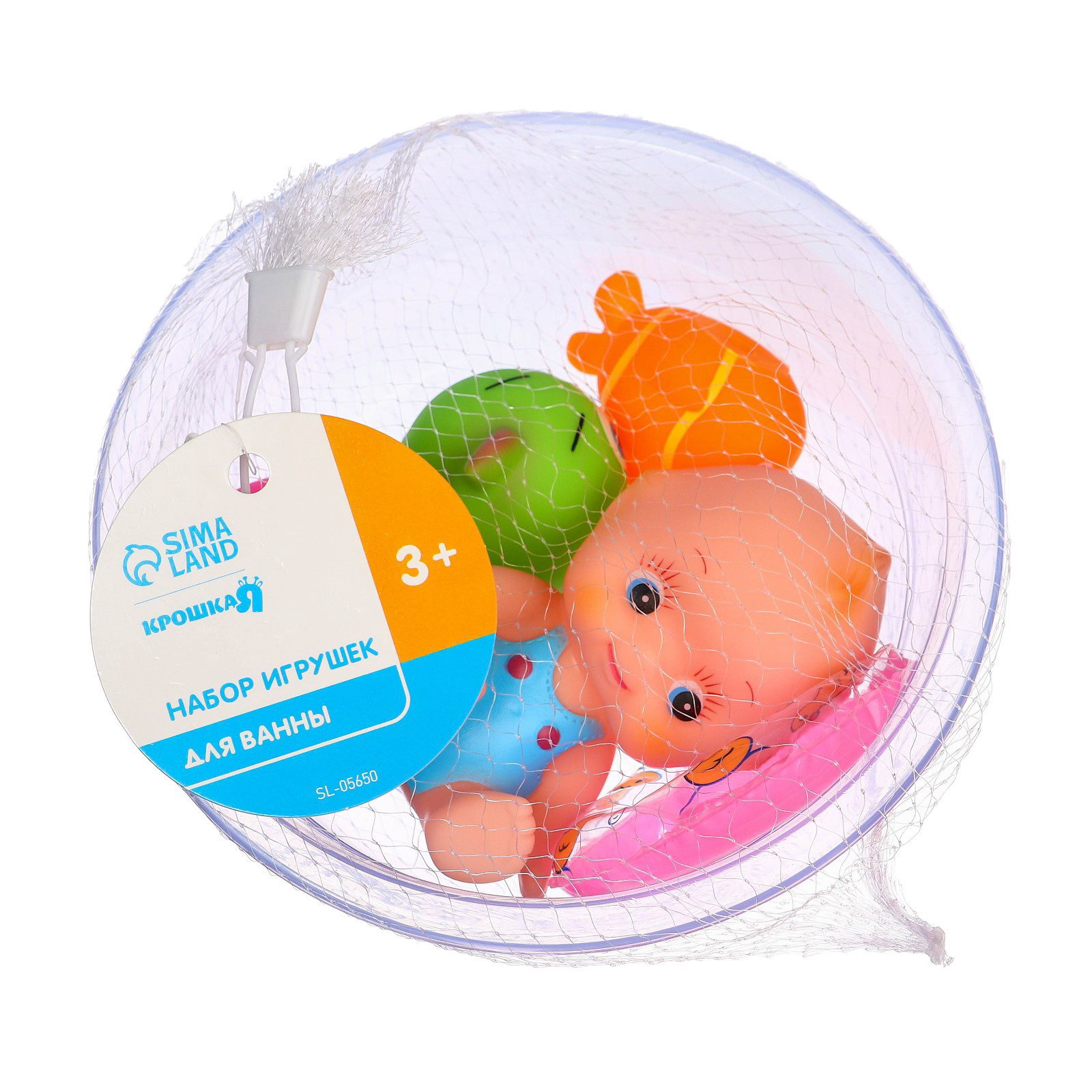 Резиновые игрушки для ванны пупс для купания с ванночкой, в наборе 6 шт., с пищалкой, 18x18x6 см., Крошка Я, Китай