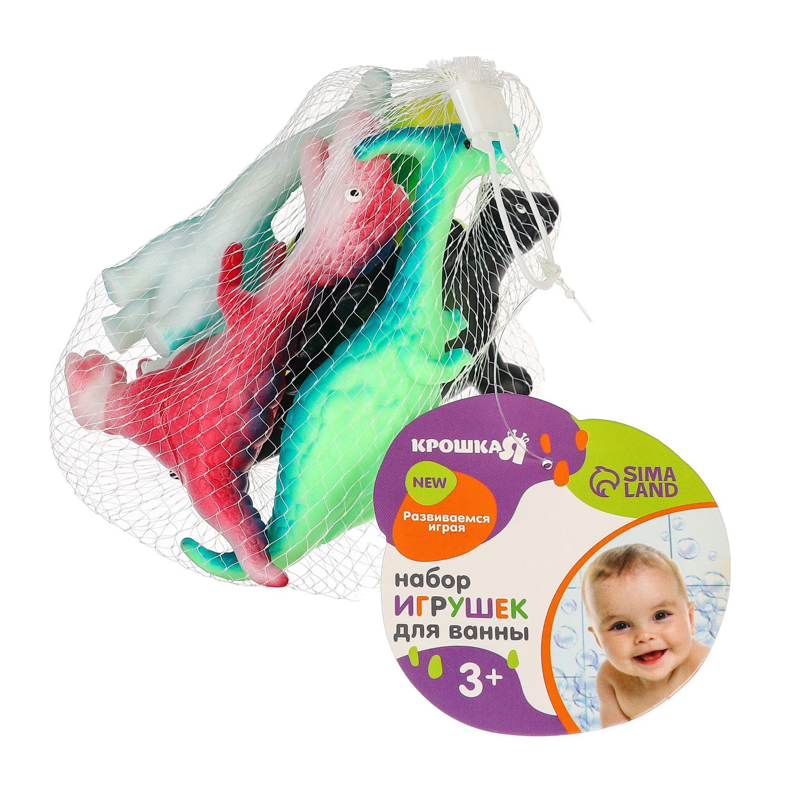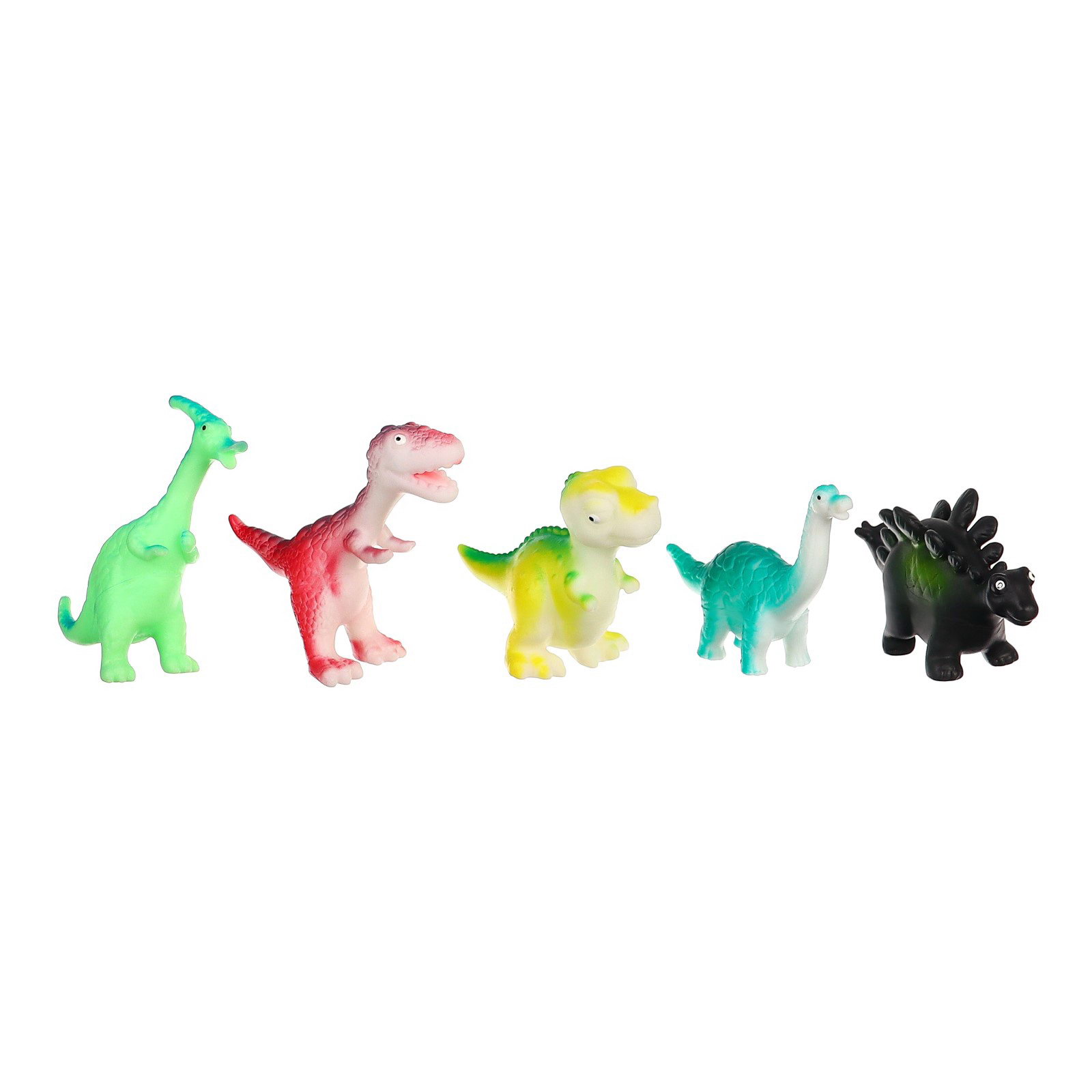 Резиновые игрушки для ванны "Динозаврики", 10 см, с пищалкой, в наборе 5 шт., 15x15x6 см., Крошка Я, Китай