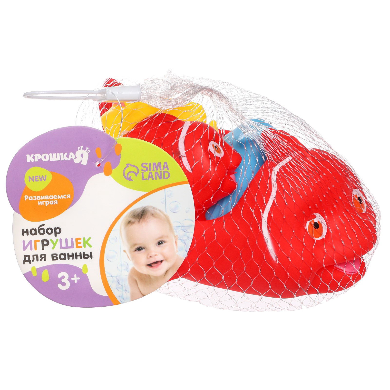 Резиновые игрушки для ванны "Мыльница: Рыбки", с пищалкой, в наборе 4 шт., 5x5x15 см., Крошка Я, Китай