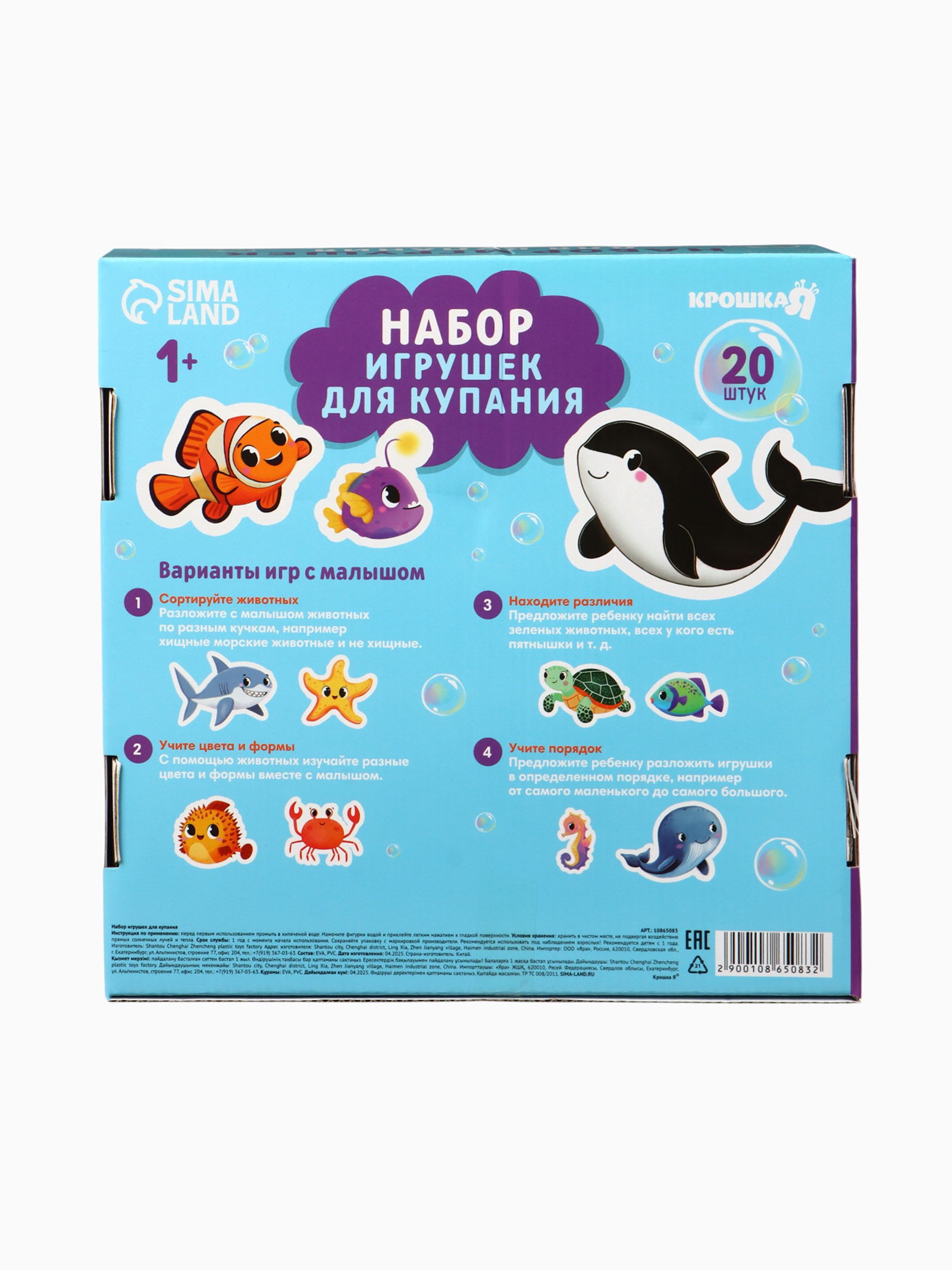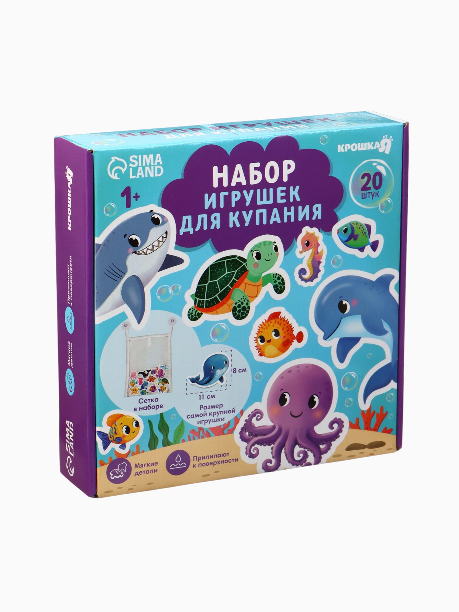 Игрушки - стикеры для купания в ванне "Морские приключения", с сеткой, EVA, набор 20 шт., 8x11x1 см., Крошка Я, Китай
