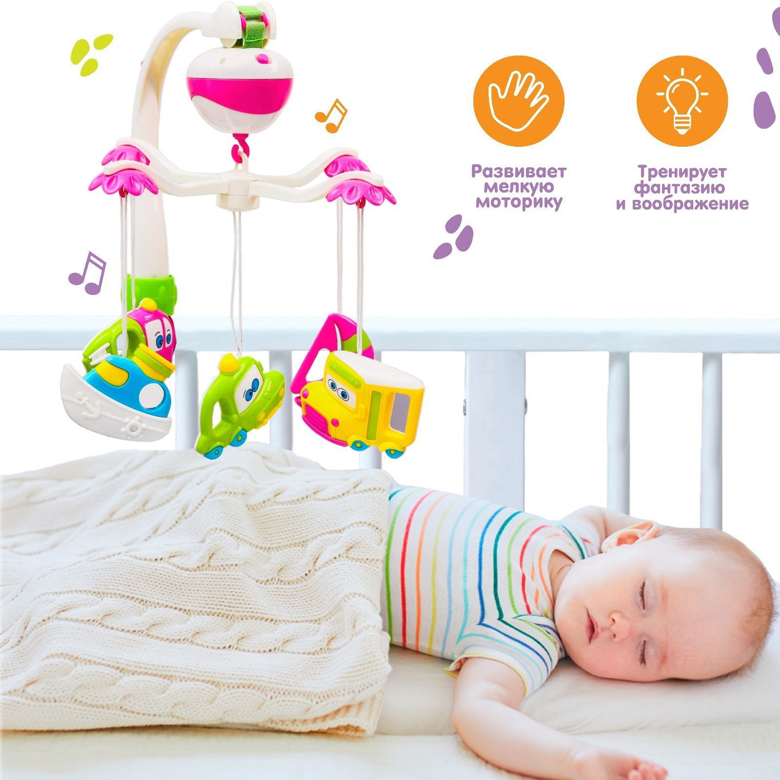Мобиль музыкальный на кроватку "Транспорт", на батарейках, 29x29x32 см., Крошка Я, Китай