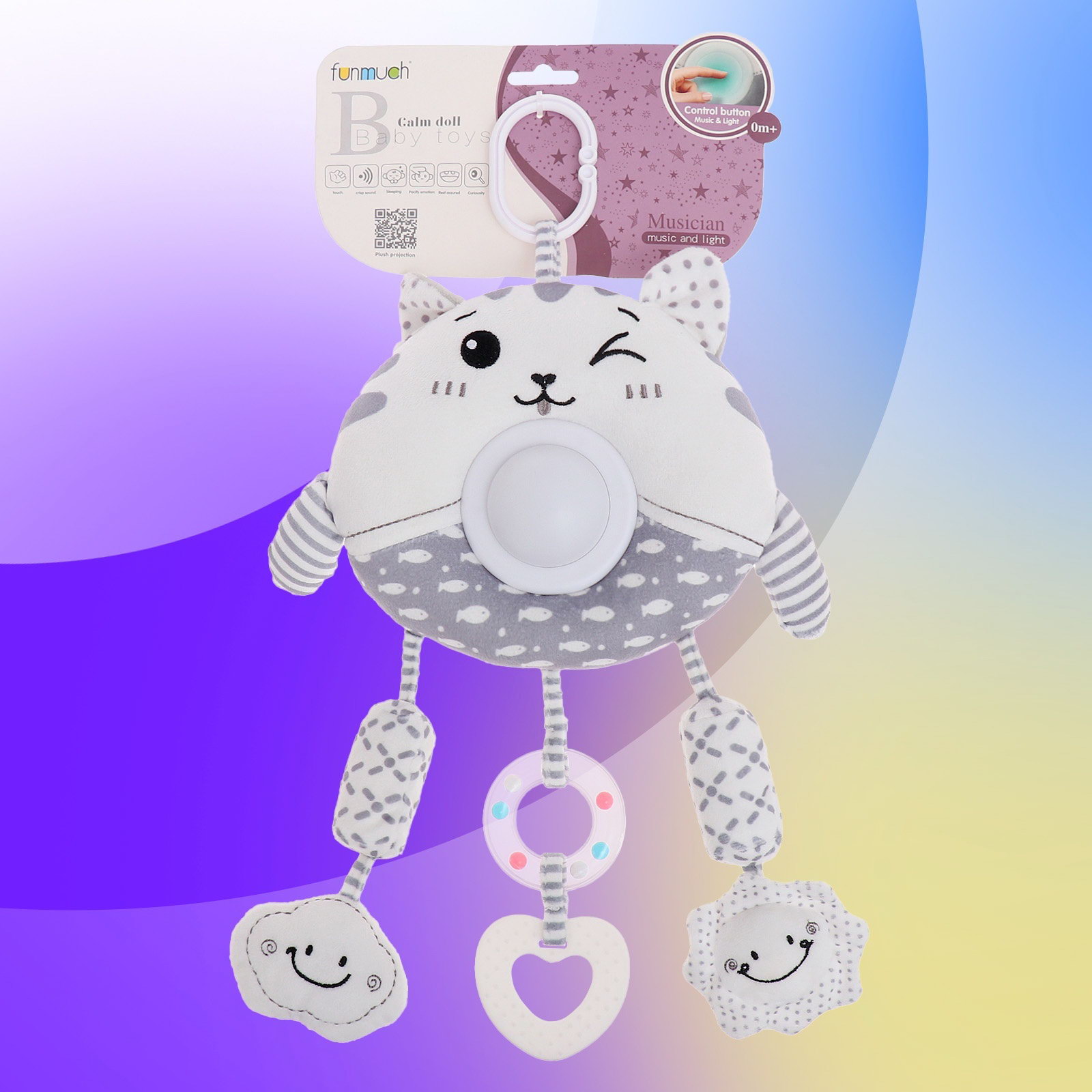 Подвеска на кроватку и коляску "Котик", музыкальная, свет, 20x45.5x8 см., Китай
