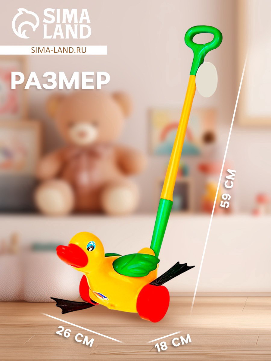 Каталка "Утёнок", длина ручки 50.5 см, 26x18x59 см., Полесье, Беларусь
