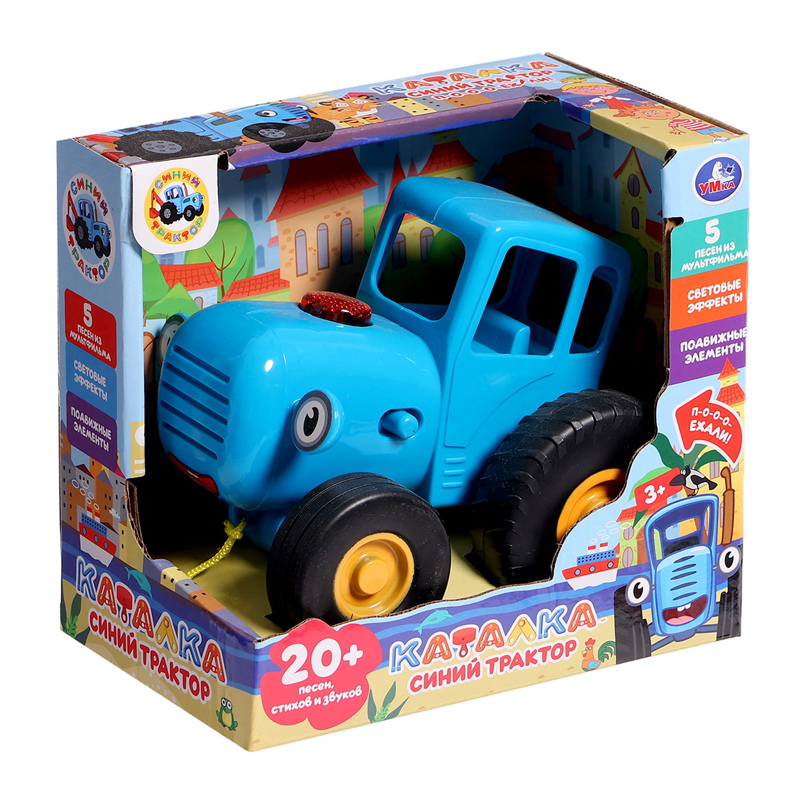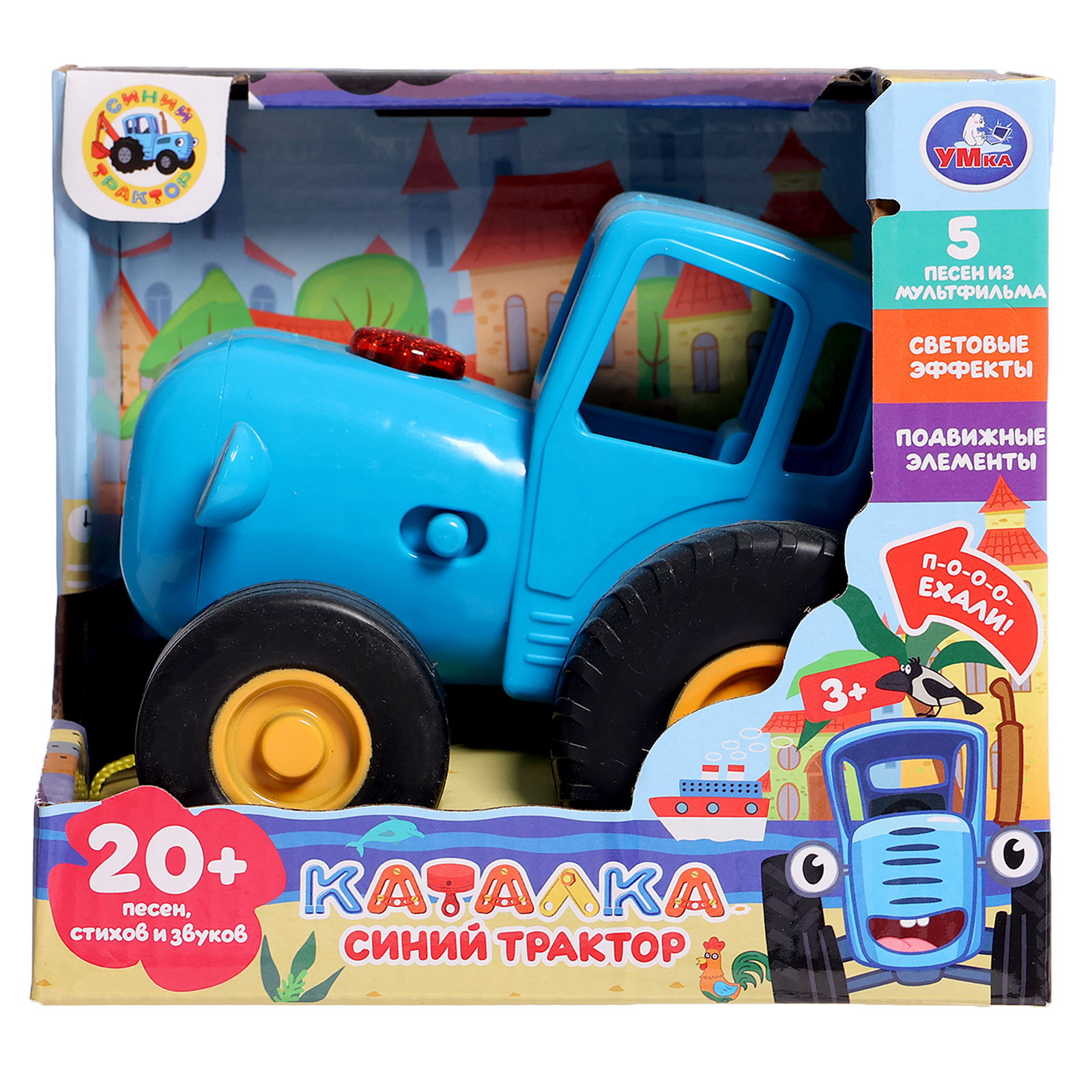 Музыкальная каталка детская на верёвке "Синий трактор", 20 песен, стихов звуков, свет, Умка, Китай