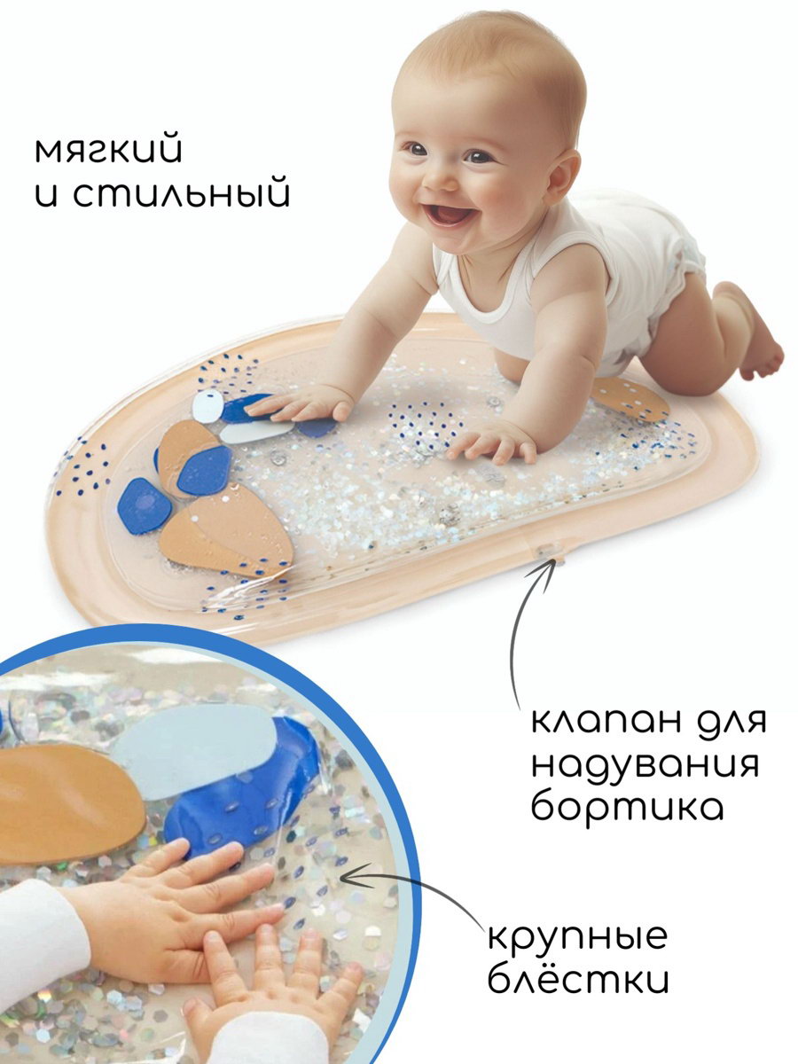 Развивающий водный коврик "Блёстки", 75x45 см, бежевый, Крошка Я, Китай