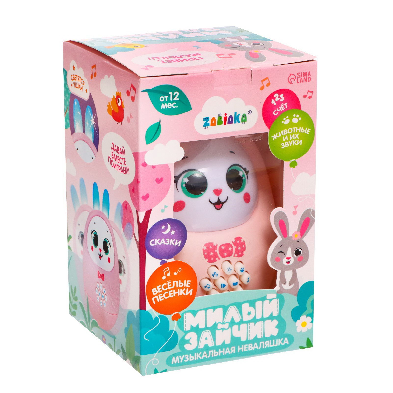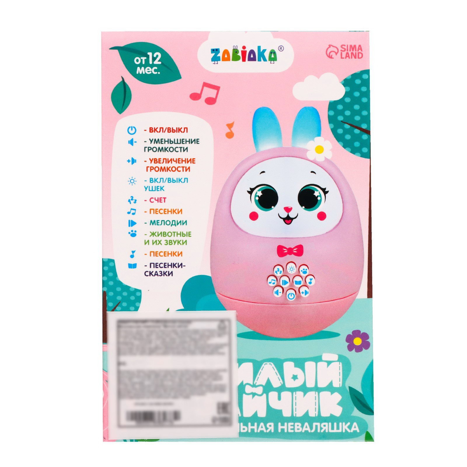 Музыкальная неваляшка "Милый зайчик", звук, свет, цвет розовый, 9x9x14 см., ZABIAKA, Китай