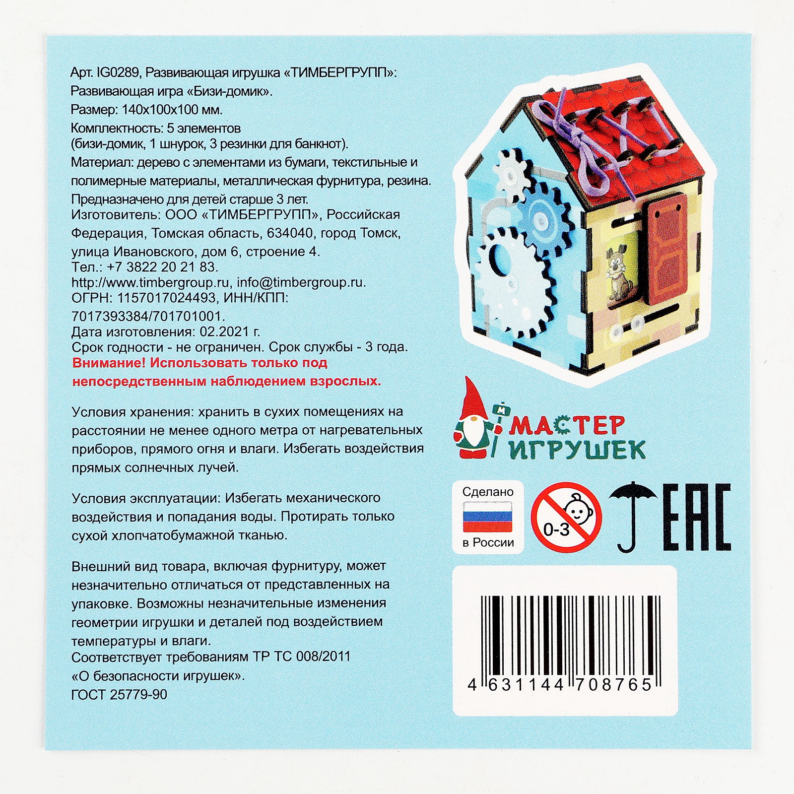 Бизиборд деревянный для детей, МИКС, 10x10x14 см., Мастер игрушек, Россия