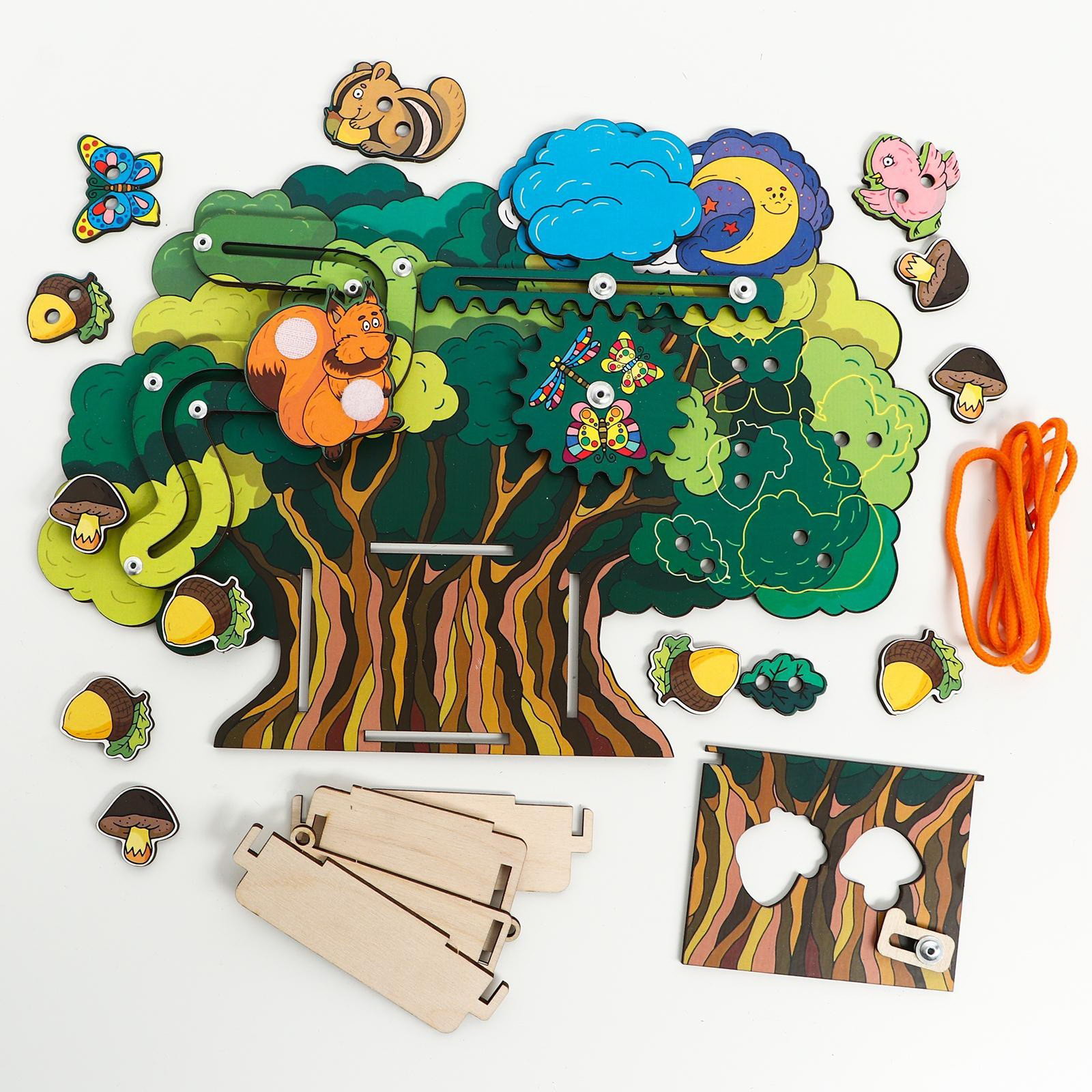 Как играть Предложите ребёнку "прогуляться в лесу". Покажите как работать со шнуровкой, разложите специальные фигурки по контурам. Игрушка рекомендована для детей от 3 лет. | ||