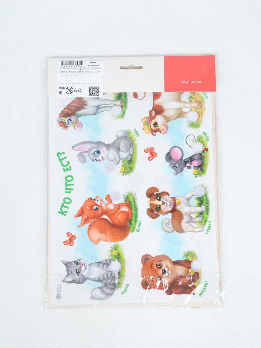 Игрушка развивающая "Веселые липучки. Кто что ест?" МИНИ, 21.7x32.7x0.5 см., Весёлые липучки, Китай