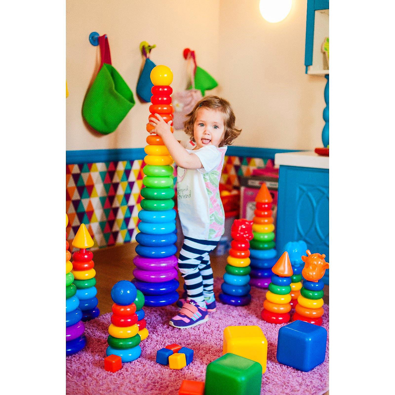Пирамидка детская большая "Гигант", пластик, 20 колец с конусом, 87 см, 89 см., Соломон, Россия