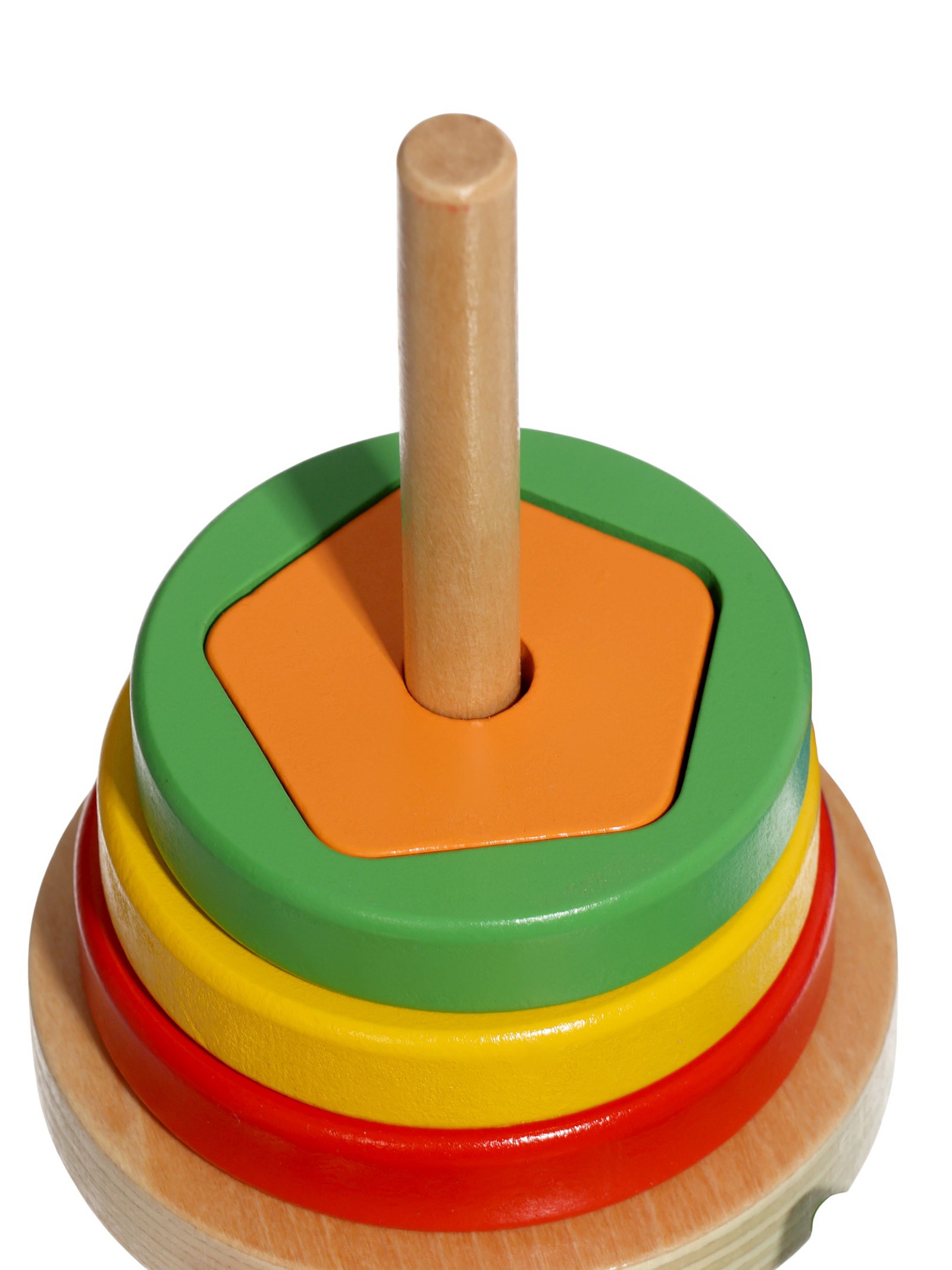 Играем с пользой Эта пирамидка работает как мини-тренажёр для мышления. Сначала малыш сортирует фигуры, подбирая каждую к своему окну. Потом собирает башню, укладывая кольца от большого к малому. Ошибки здесь не страшны они становятся частью процесса. Каждое действие укрепляет связь между глазом, мозгом и пальцами. Игра напоминает "головоломку без слов", где всё понятно по форме и логике. Польза для развития
