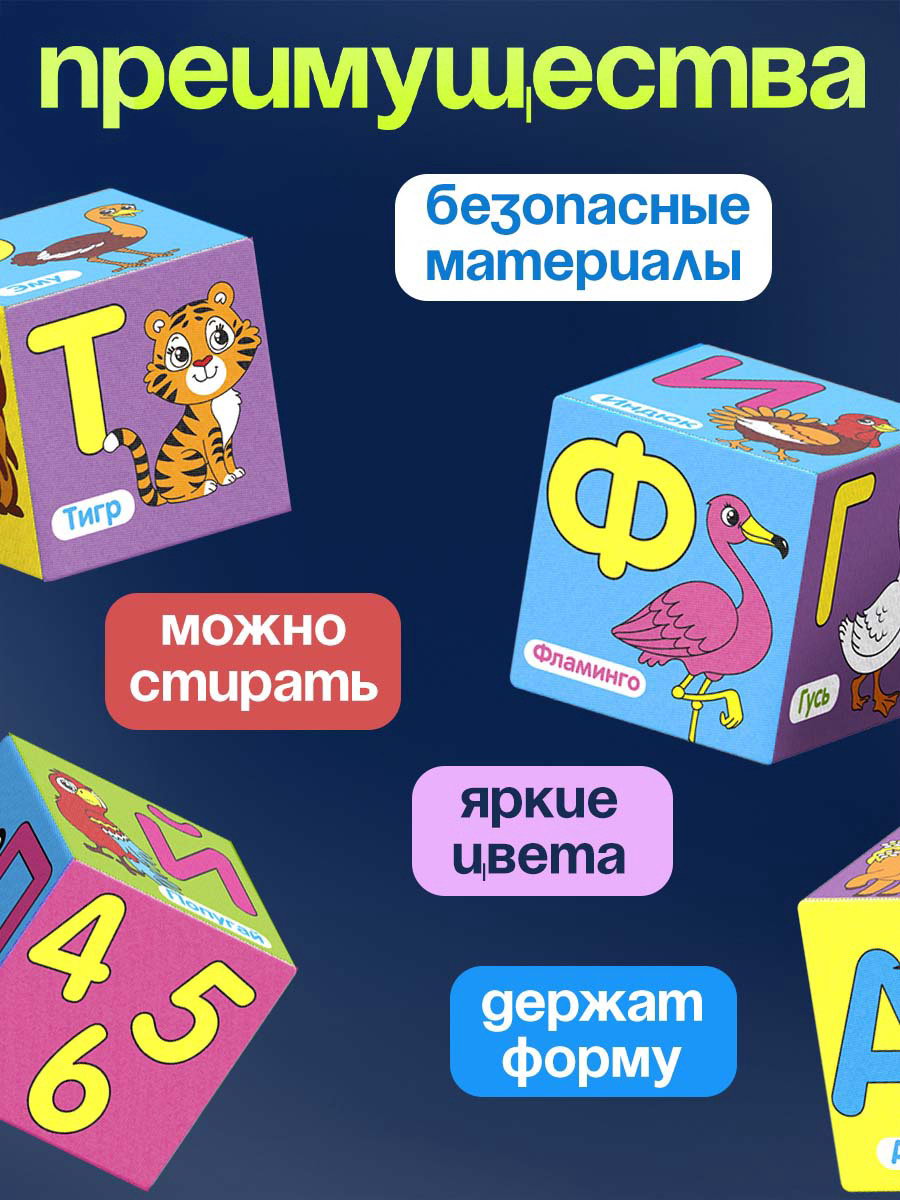 Играем и учимся вместе Эти мягкие кубики не просто игрушка, а инструмент для гармоничного развития ребёнка. С их помощью малыш сможет знакомиться с буквами, собирать простые слова, изучать цвета и формы, а также развивать координацию движений. Каждый кубик открывает новые возможности для создания историй и игр, которые увлекут как мальчиков, так и девочек. Это идеальный способ провести время вместе с ребёнком, превращая обучение в увлекательное приключение. Создайте особую атмосферу Мягкие кубики для изучения алфавита помогают малышам погружаться в мир знаний через игру. Они становятся не только игрушкой, но и помощником в развитии важных навыков. Простые действия переворачивание, складывание и соединение кубиков учат ребёнка решать задачи и пробовать свои силы в новых заданиях. Эти кубики станут первым шагом к освоению методик раннего развития, таких как Монтессори, делая обучение естественным и увлекательным. | ||