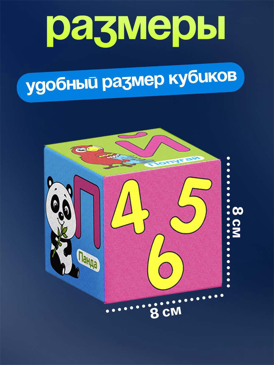 Мягкие кубики "Учим алфавит", 6 шт, 10 x 10 см, по методике Монтессори, 10x20x30 см., IQ-ZABIAKA, Россия