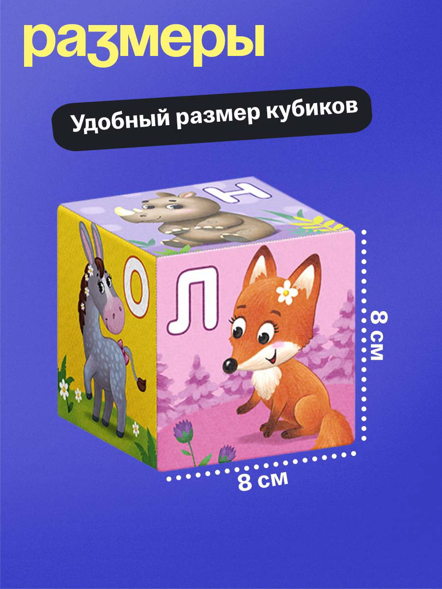 Мягкие кубики "Алфавит", 6 шт., 8 x 8 см, 8x8x8 см., IQ-ZABIAKA, Россия