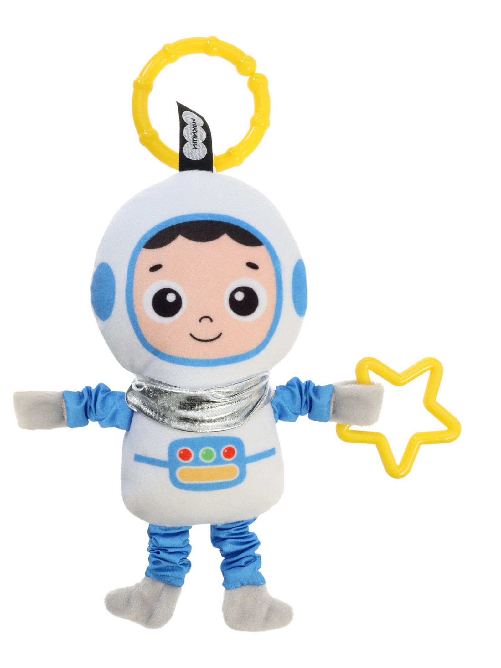 Добавьте радости в каждый день Этот милый космонавт не просто развлекает малыша, но и помогает развивать важные навыки. Он привлекает внимание ребёнка, стимулирует зрительное и слуховое восприятие, а также становится источником положительных эмоций. Мягкая текстура и удобная форма делают её идеальной для игр на коврике, в кроватке или коляске. Космонавт может использоваться как грызунок для десен, добавляя комфорта в период прорезывания зубов. Его фирменная упаковка делает игрушку прекрасным подарком на выписку, крестины или первый день рождения. Как ухаживать