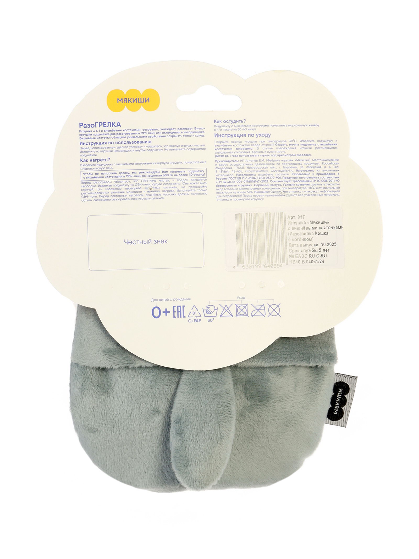 Мягкая игрушка - грелка "Кошка с котёнком", с вишнёвыми косточками, 17 см, Мякиши, Россия