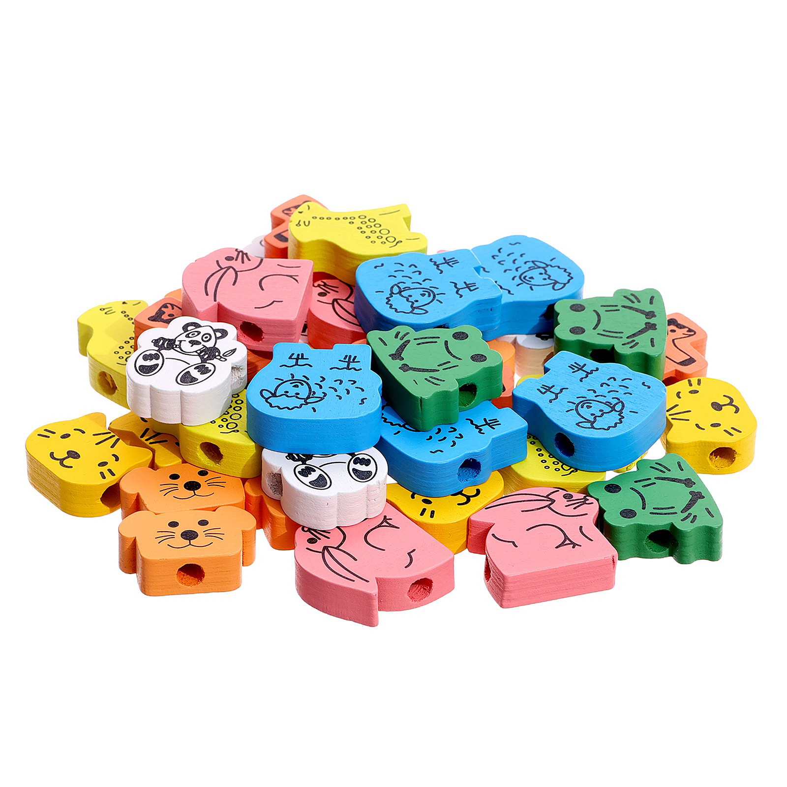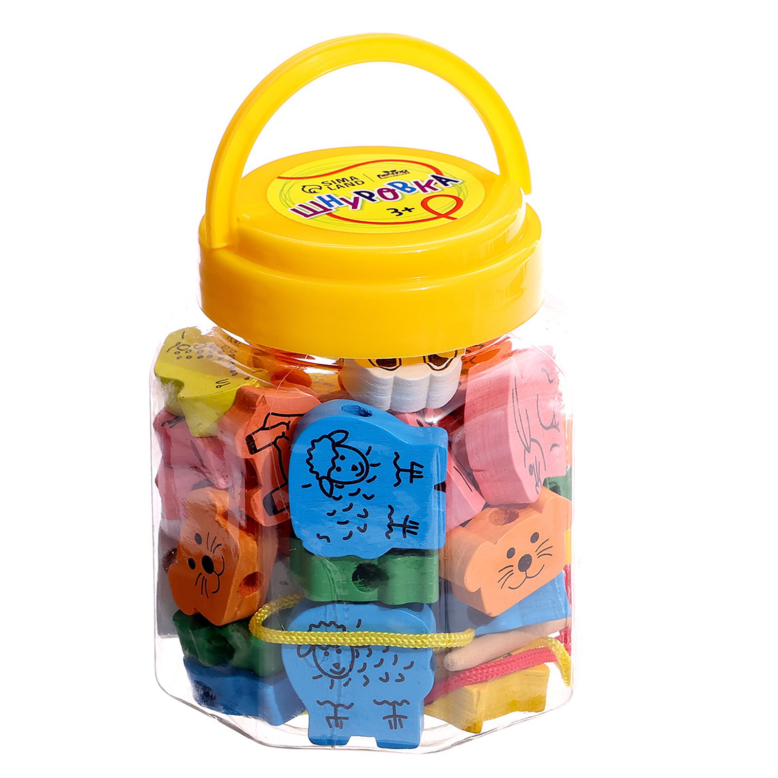 Шнуровка в банке 40 деталей "Животные", 2 иглы, 2 шнурка, МИКС, 9x9x11 см., Лесная мастерская, Китай