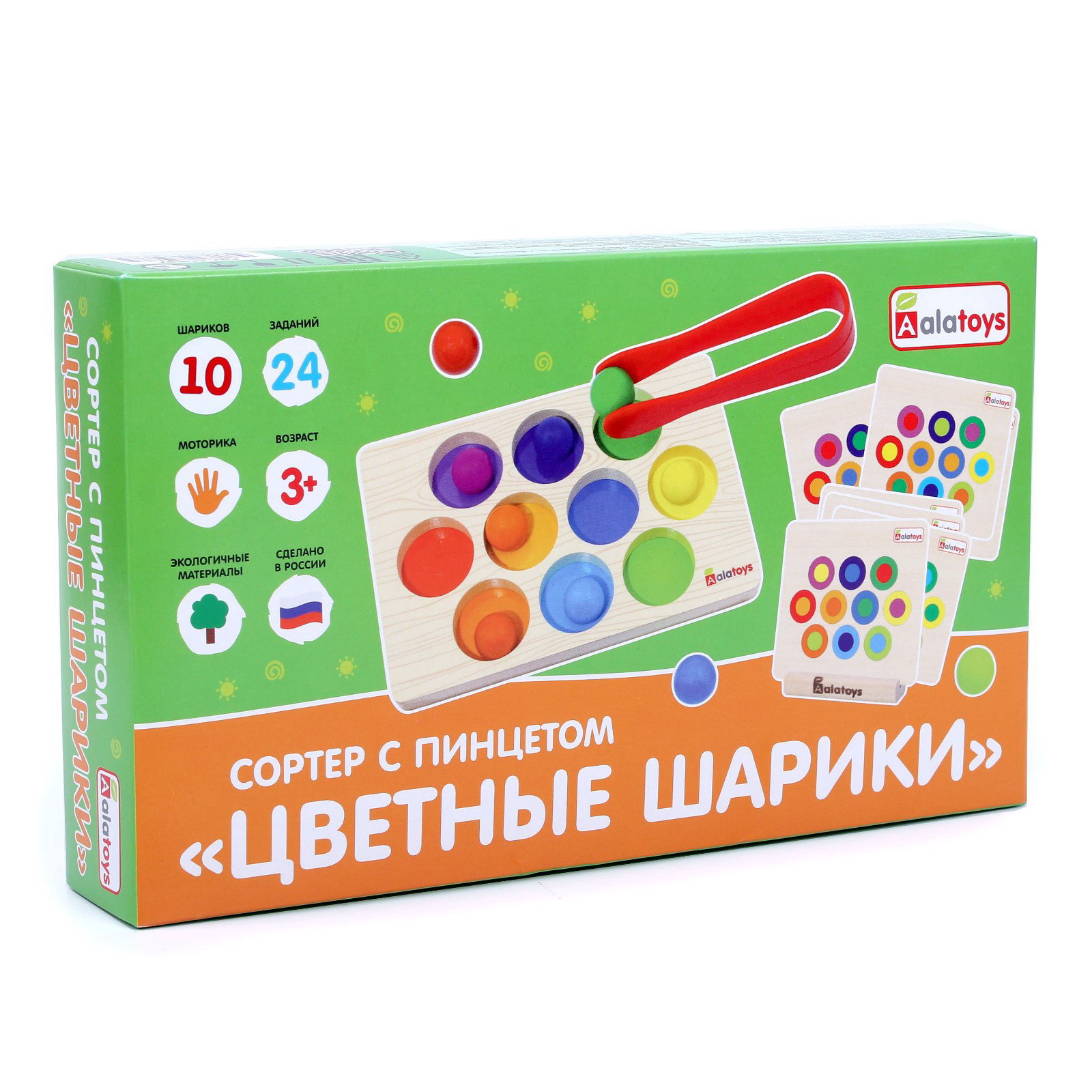 Сортер с пинцетом "Цветные шарики", Alatoys, Россия