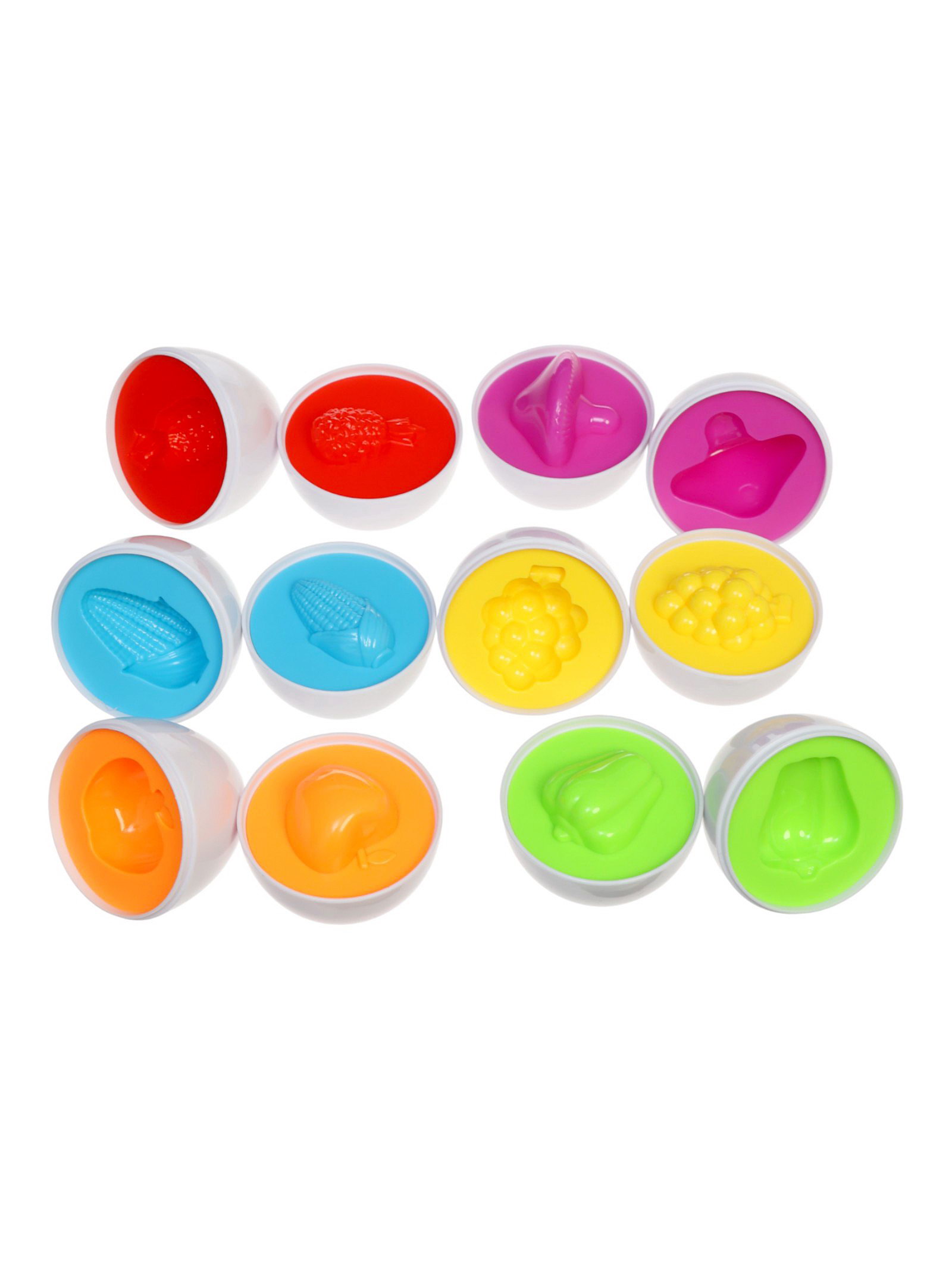 Как играть? Набор предлагает три увлекательных режима игры, которые делают процесс обучения весёлым и разнообразным. 1. Половинки Ребёнку нужно соединять половинки яиц, подбирая пары по форме и цвету. Игра развивает внимательность, логическое мышление и зрительную память. 2. Перевёртыш Разложите яйца, покажите их ребёнку, затем переверните. Малышу предстоит открывать по две половинки и находить совпадения. Такой формат отлично тренирует память и концентрацию. 3. Отпечаток Фигурки овощей и фруктов можно использовать для создания отпечатков на пластилине, тесте или кинетическом песке. Это занятие развивает мелкую моторику и воображение. | ||