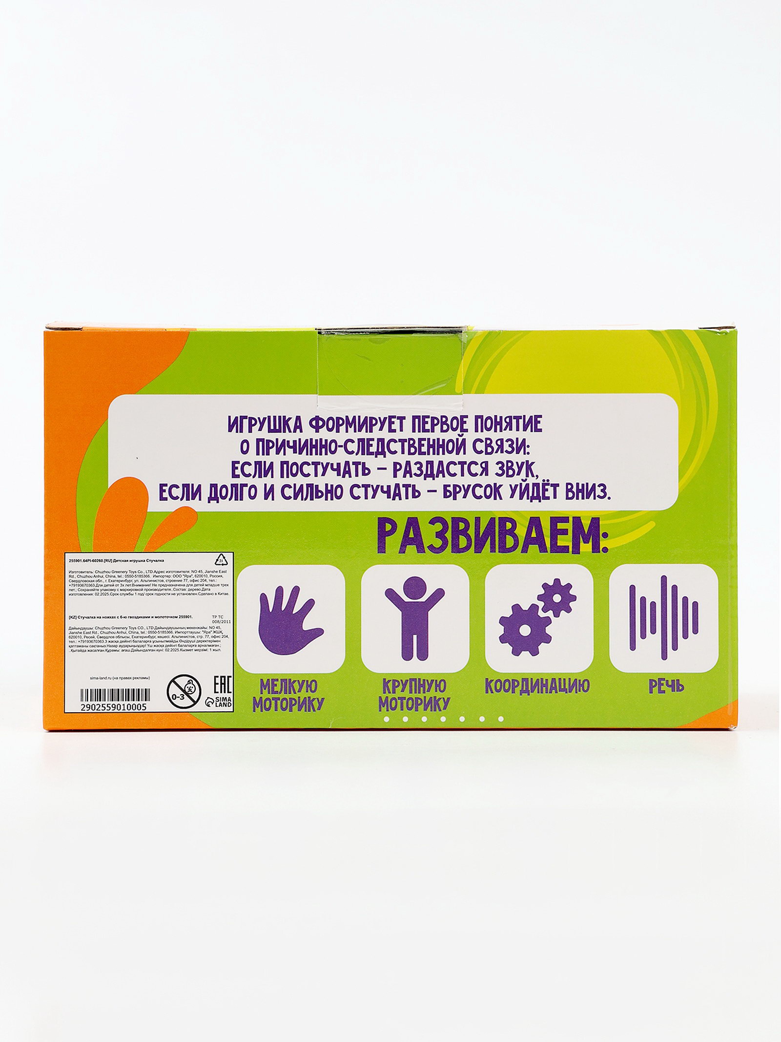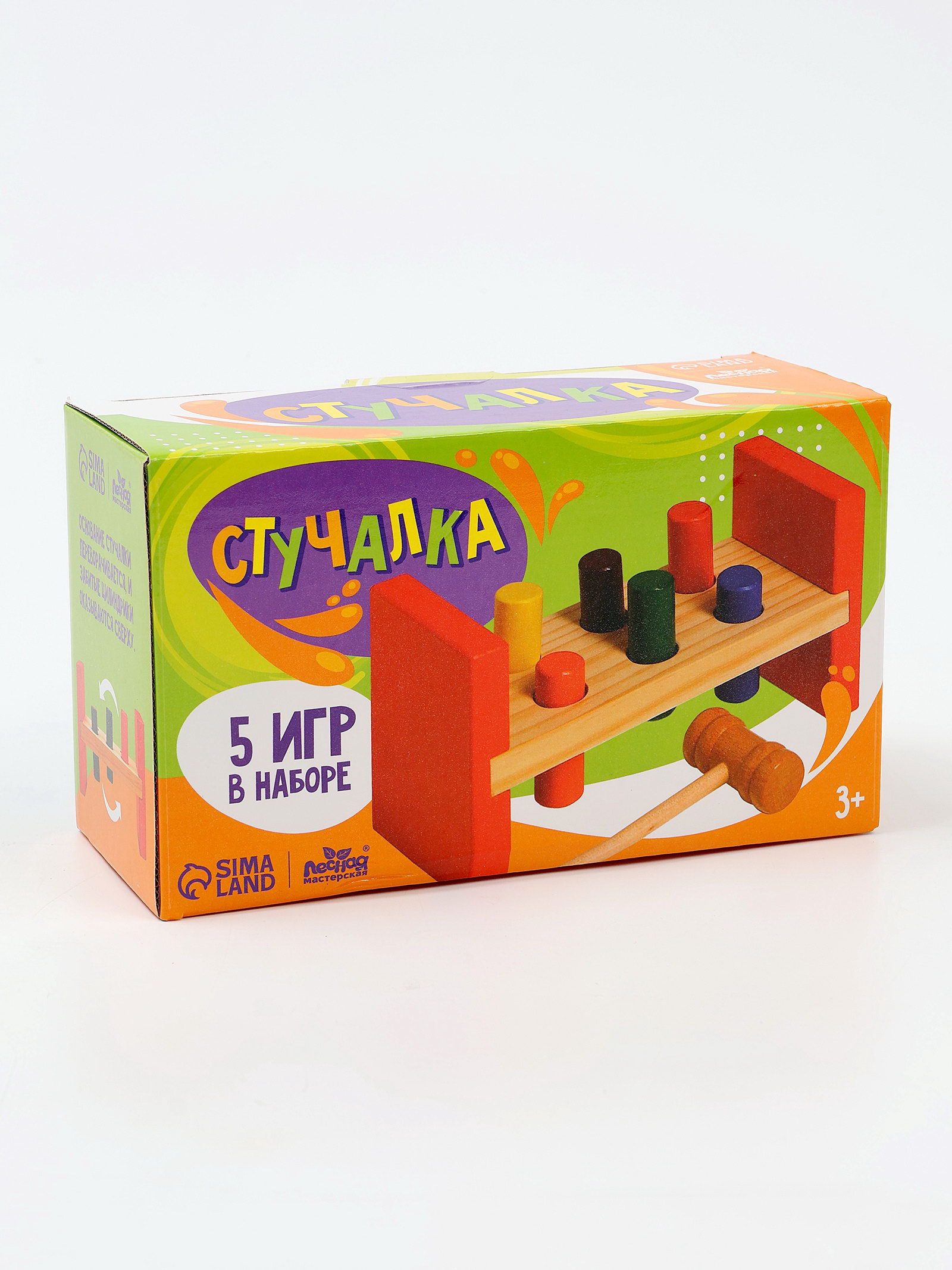 Размер упаковки: 20.5 x 11.5 x 8.5 см. Из натурального дерева: Да Возраст: От 3 лет Развитие навыков: Моторика Игрушка с видео: Да Для кого: Унисекс tnved: 9503010000 Деревянная стучалка с молоточком и гвоздиками это яркая и безопасная игрушка для детей от 3 лет. Изготовленная из натурального дерева и окрашенная нетоксичными красками, она помогает развивать мелкую моторику, координацию и усидчивость. Малыш с удовольствием будет забивать гвоздики, а затем переворачивать подставку, чтобы начать игру заново. Особенности игрушки