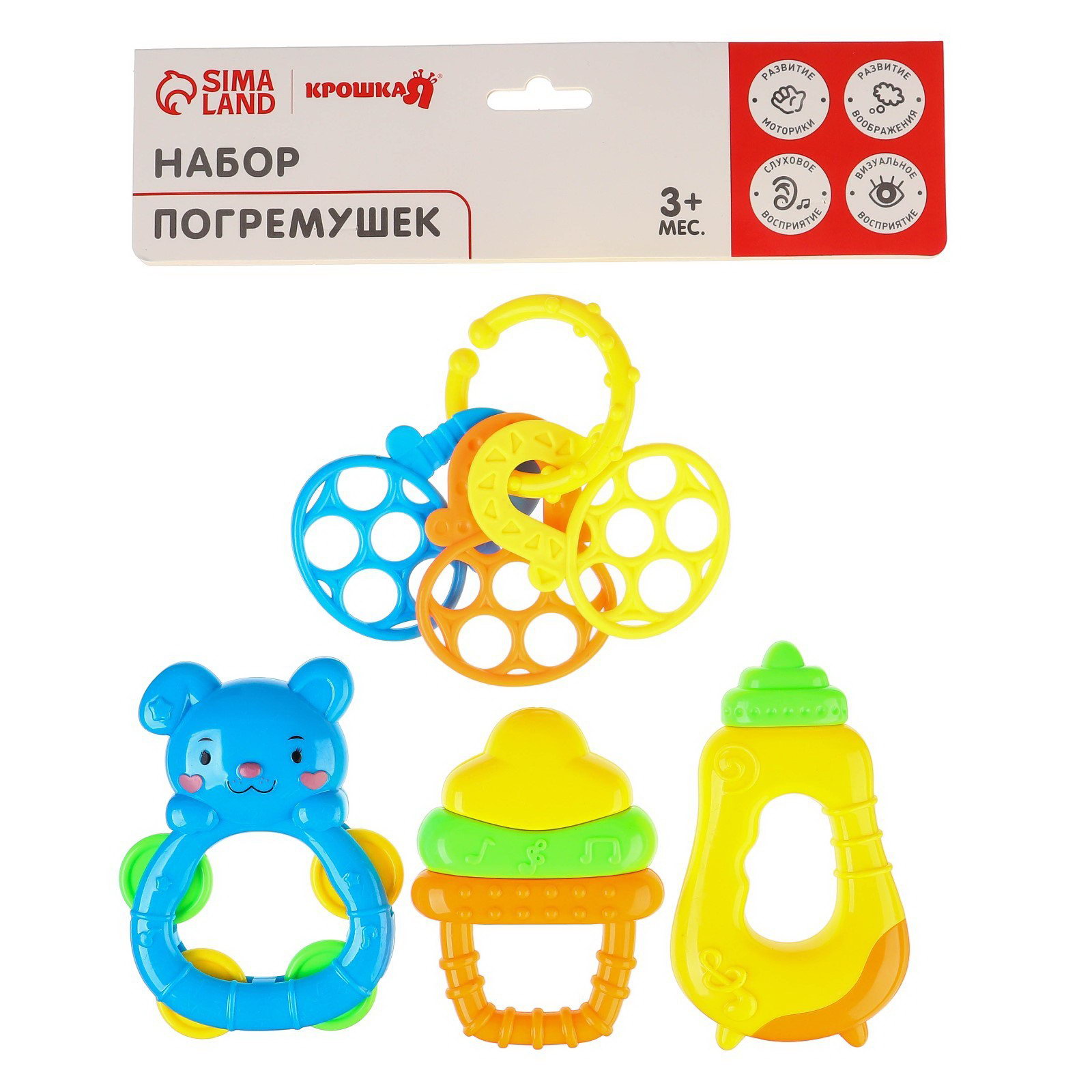 Погремушки "Яркое настроение", от 3 мес., 4 шт., 21x21.5x5.3 см., Крошка Я, Китай