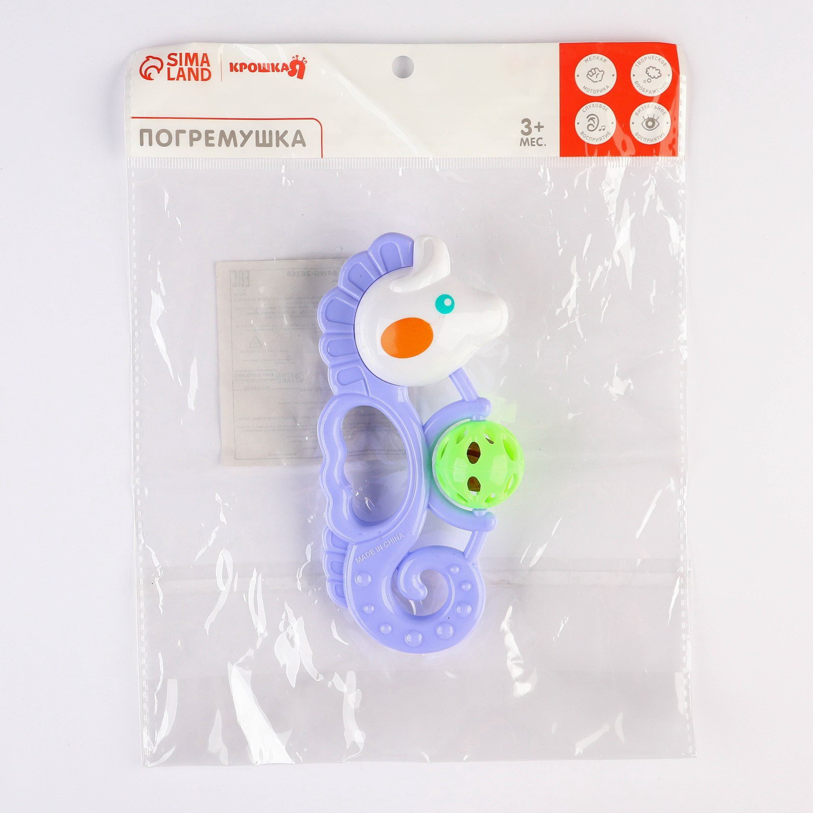 Погремушка "Морской конек", от 3 мес., МИКС, 6x3x16 см., Крошка Я, Китай