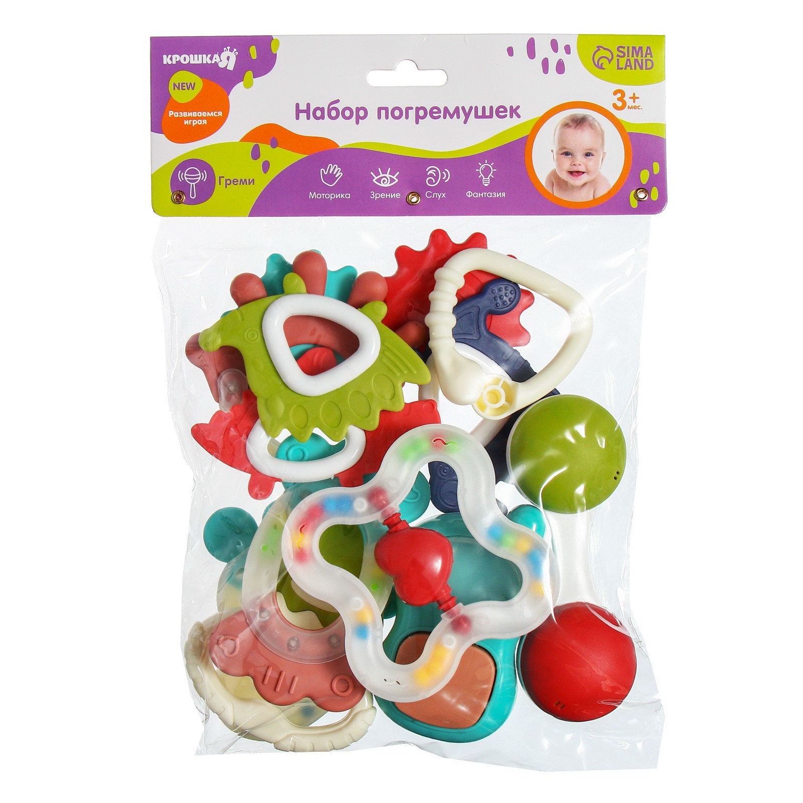 Погремушки "Растем вместе", с эластичными элементами, 9 шт., 6x11x28 см., Крошка Я, Китай