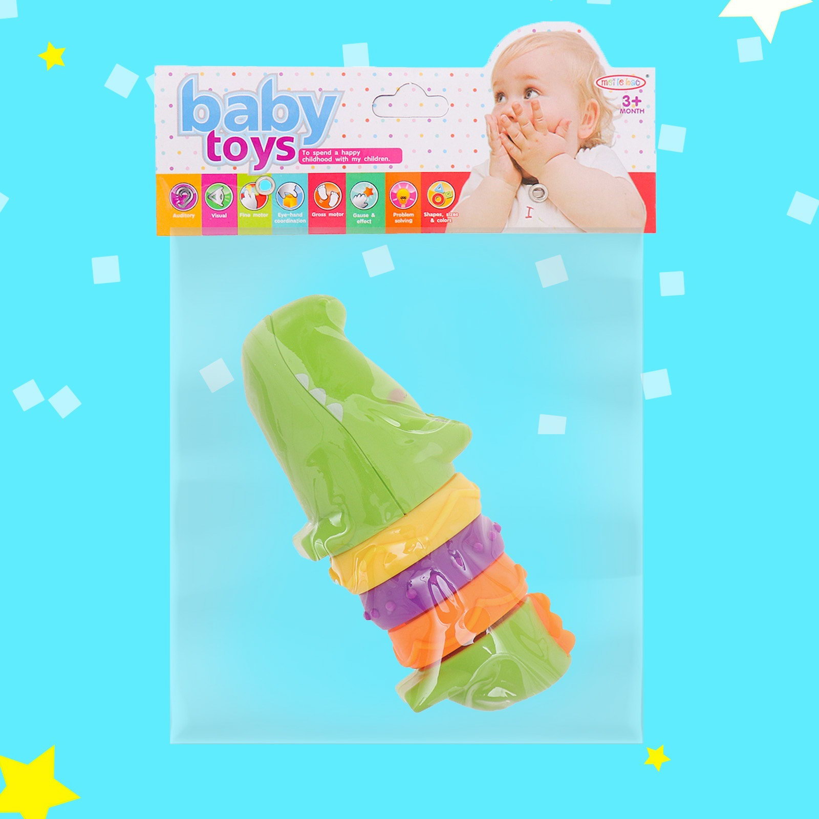 Размер упаковки: 5 x 20 x 15 см. Возраст: От 3 месяцев Охлаждающий: Нет Набор: Нет Для кого: Унисекс tnved: 9503010000 Погремушка с прорезывателем для зубов "Крокодильчик" разработана специально для малышей с рождения. Игрушка привлечёт внимание дизайном, яркими цветами, и надолго займёт малыша. Перед игрой и после, промывайте игрушку под проточной водой с использованием мыла, или опустите на 2-3 минуты в кипящую воду. Не забудьте тщательно просушить изделие. Особенности игрушки