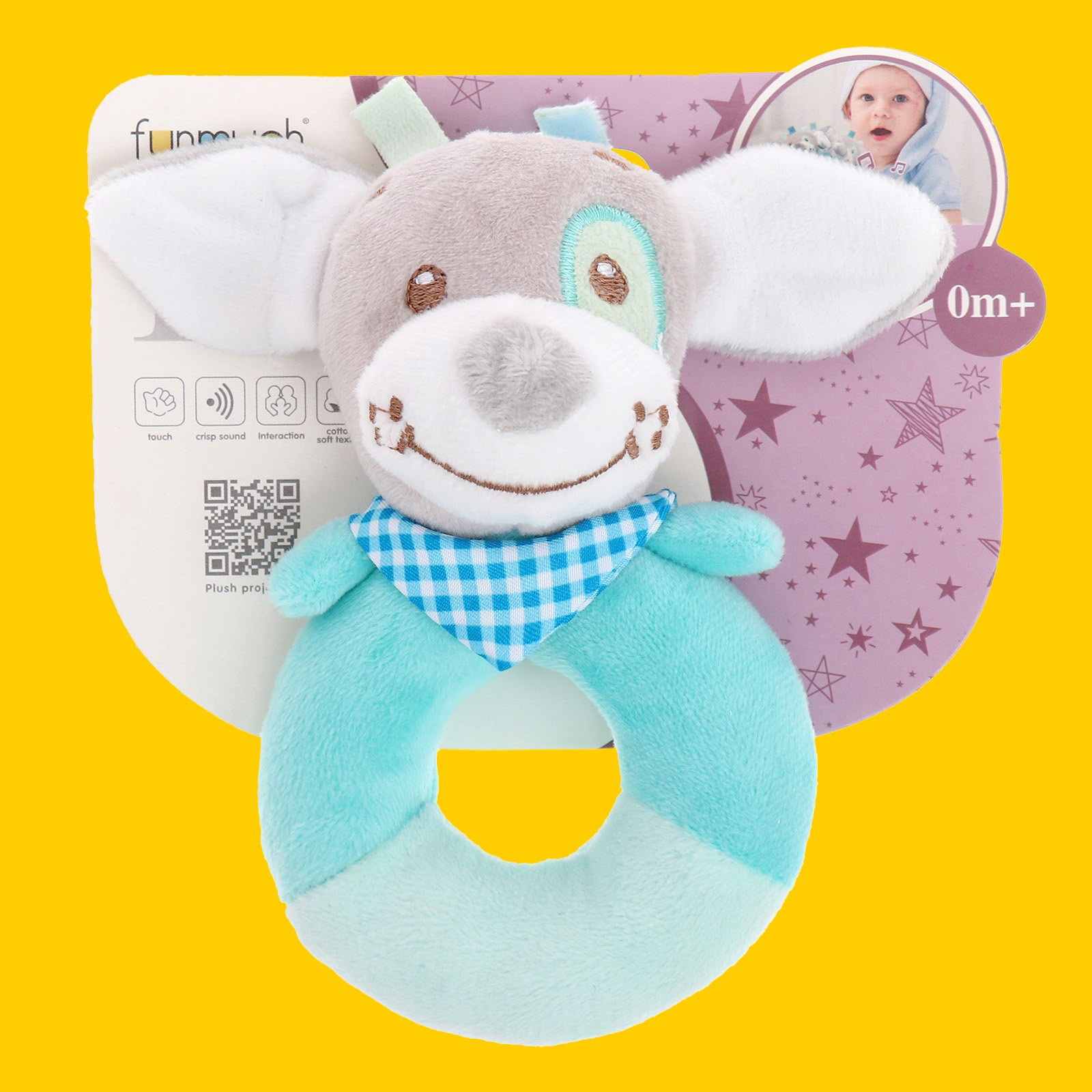 Размер упаковки: 6 x 15 x 15 см. Возраст: От 0 месяцев Набор: Нет Игрушка с видео: Да Для кого: Для мальчика tnved: 9503005000 Мягкая, приятная на ощупь погремушка в виде очаровательной собачки станет идеальным компаньоном для малыша с первых дней жизни. Яркие цвета и милый дизайн привлекут внимание ребёнка, а звонкая погремушка внутри игрушки способствует развитию слуха и координации движений. Особенности погремушки