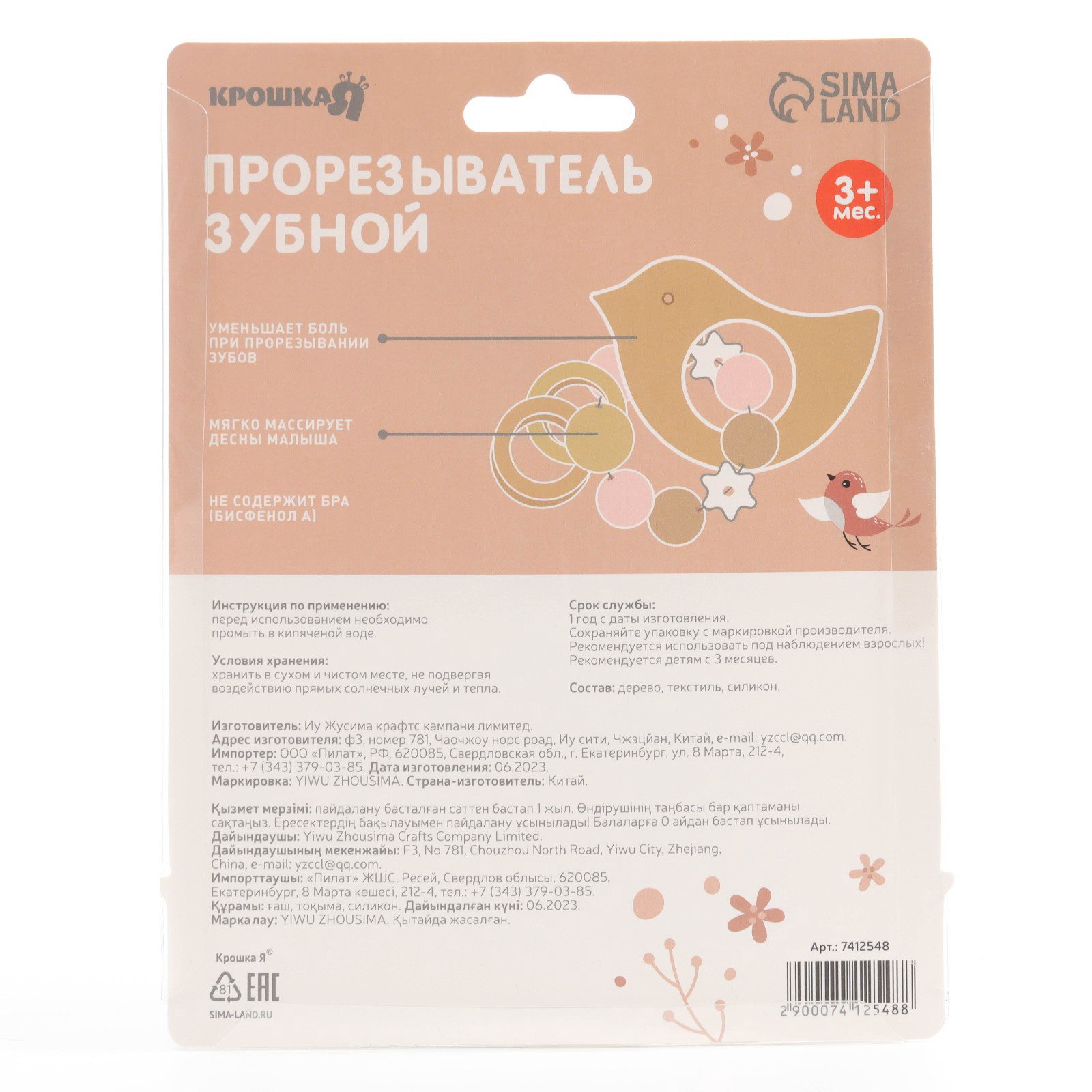 Прорезыватель для зубов "Птичка", с эластичными и деревянными элементами, 12x12x0.1 см., Крошка Я, Китай