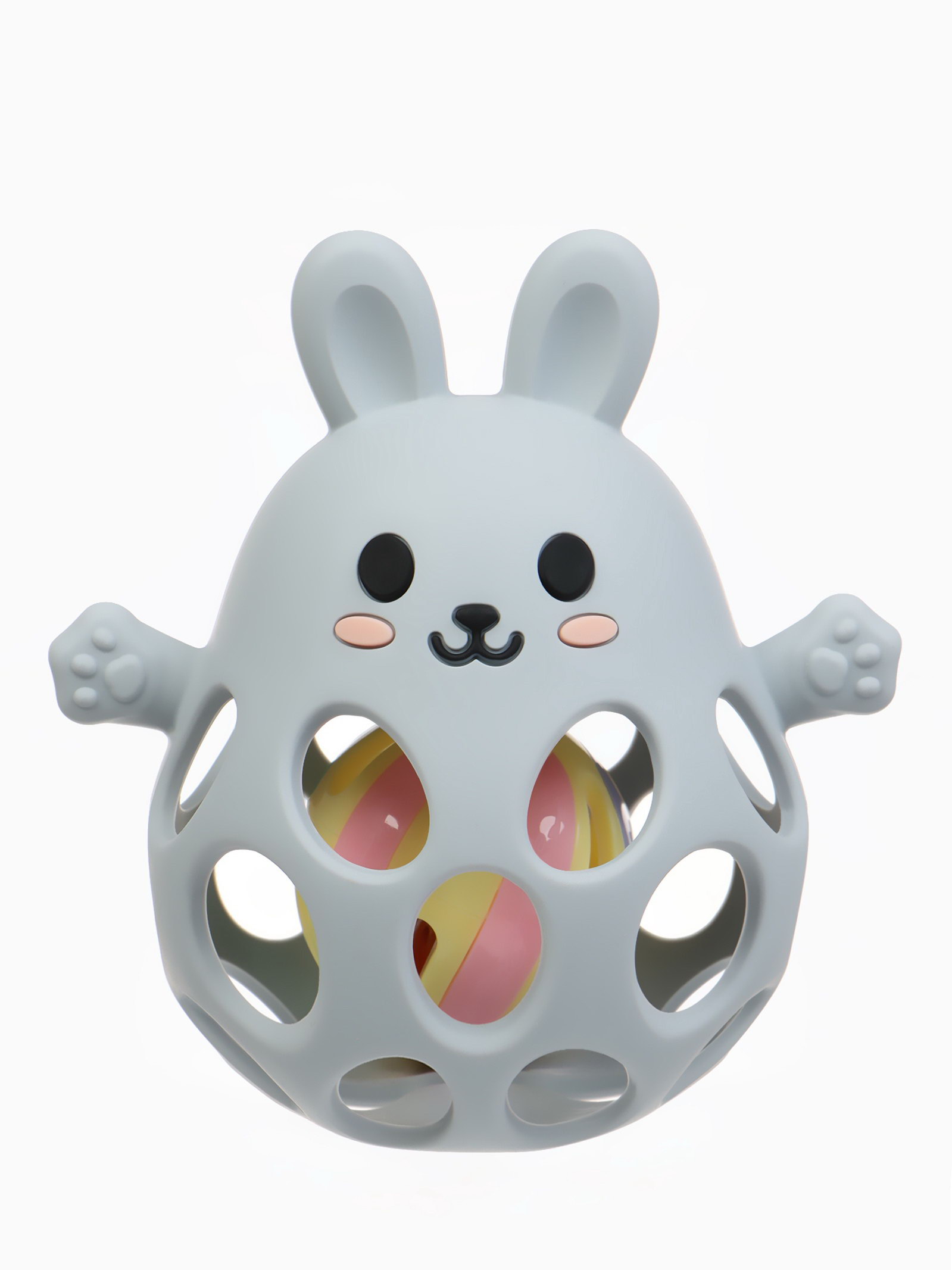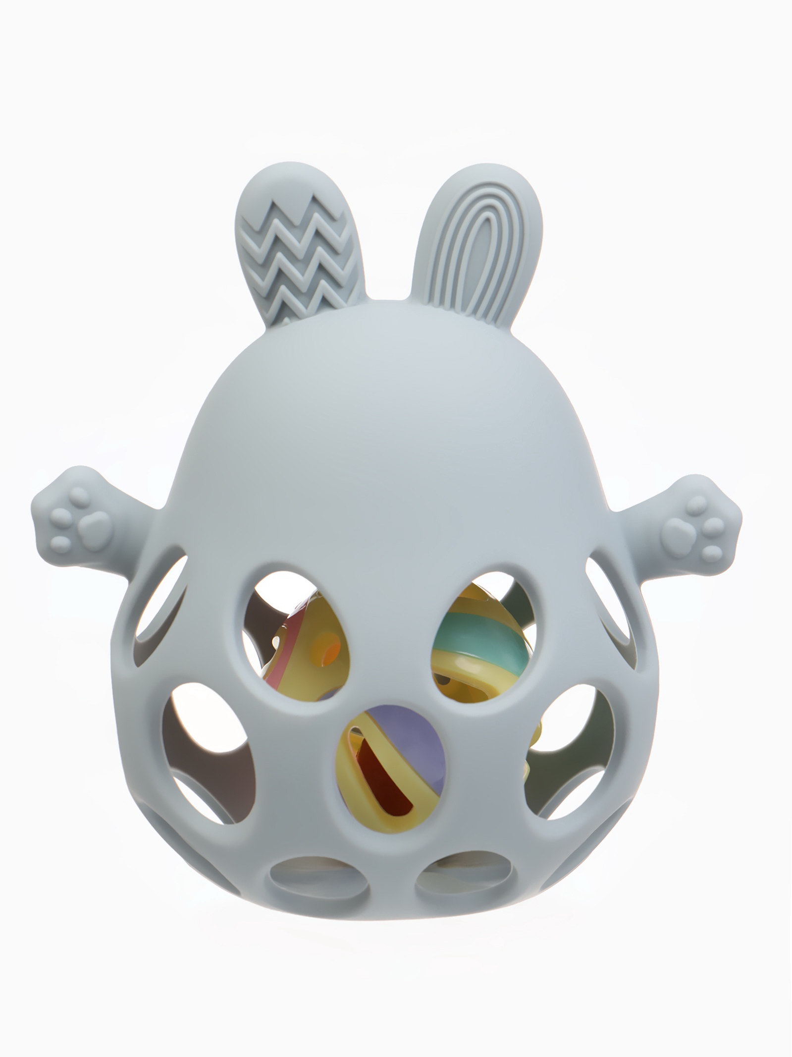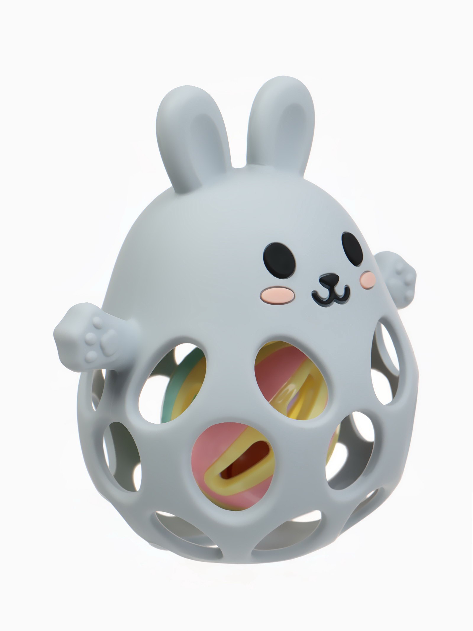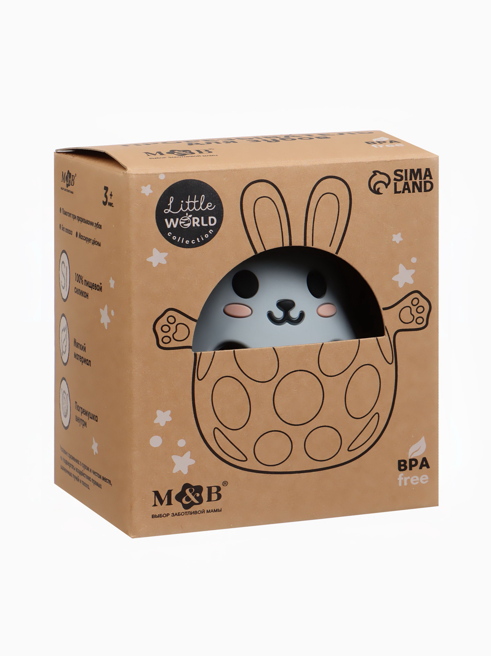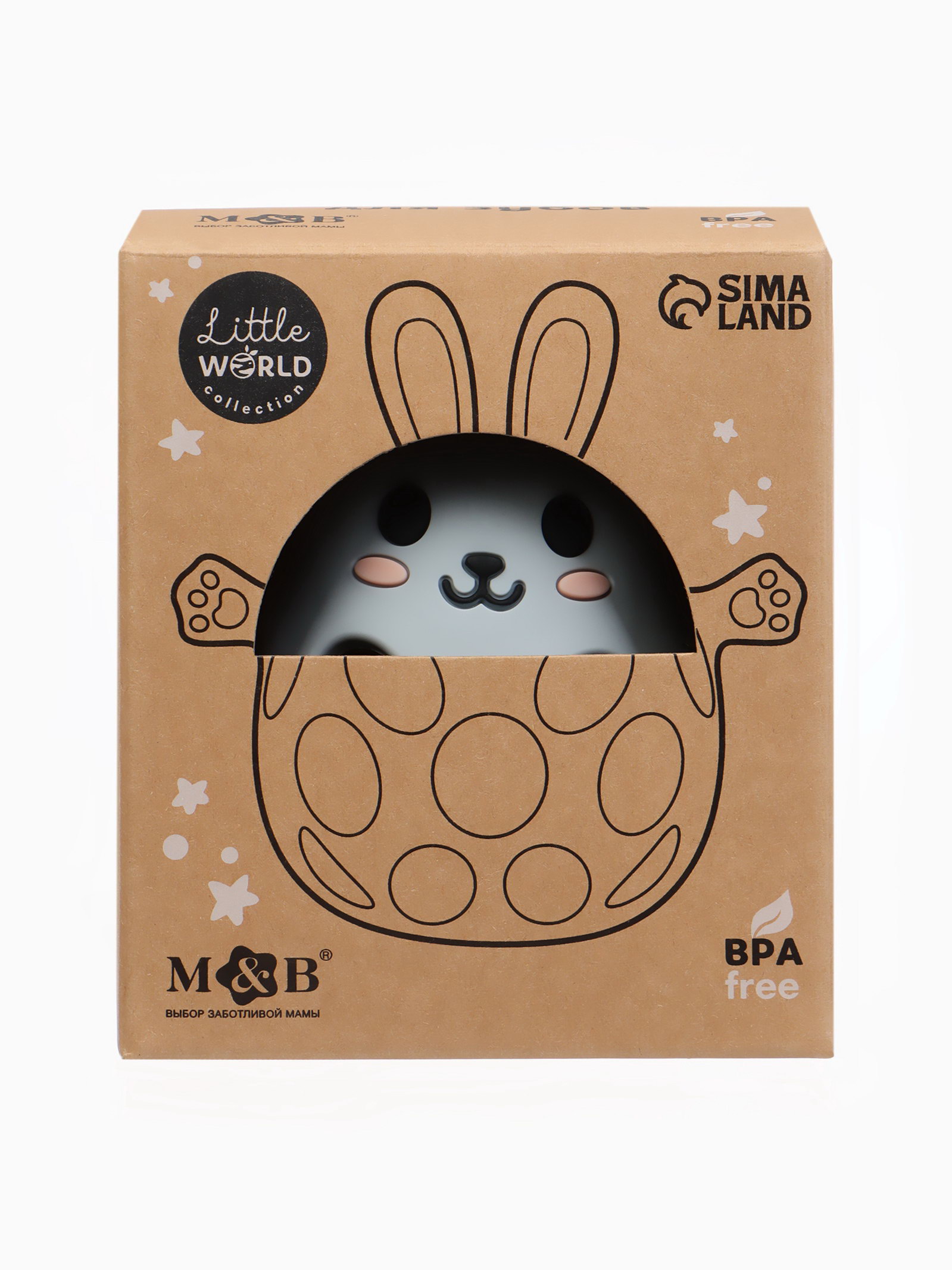 Прорезыватель погремушка "Зайка", силиконовый, 12.5 см, серо-голубой, 9x12.5x12.6 см., Mum&Baby, Китай