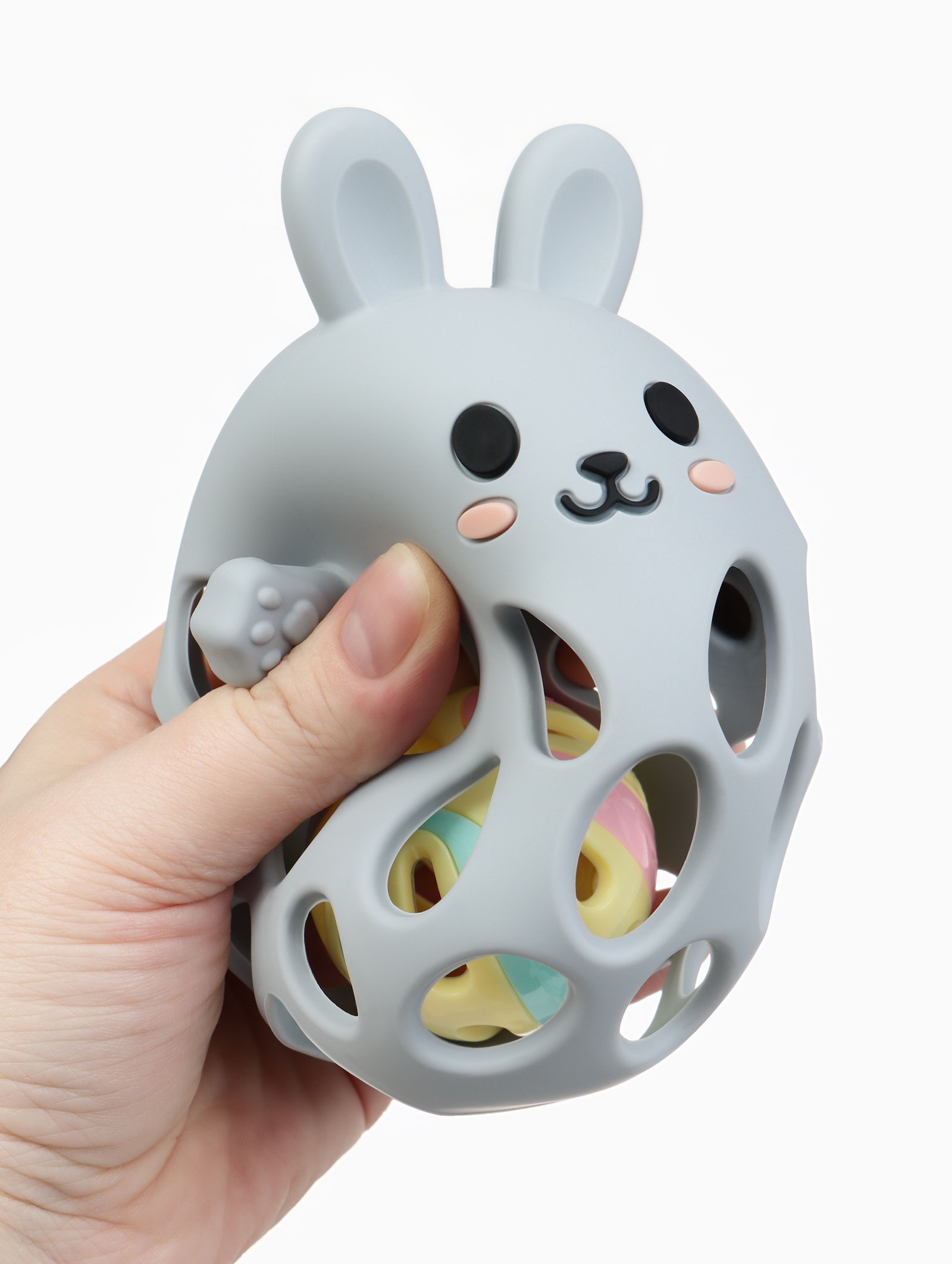 Развивающие элементы: Погремушка, Прорезыватель Размер упаковки: 8 x 12 x 11 см. tnved: 3926909700 Охлаждающий: Нет Для кого: Унисекс Цвет: Серый Возраст: От 3 месяцев Набор: Нет Развитие навыков: Моторика Дополнительные функции: Развивающая Для малышей: Да Прорезыватель-погремушка "Зайка" создан для комфортного и лёгкого периода прорезывания зубов. Мягкий пищевой силикон бережно контактирует с дёснами, а разные рельефные зоны обеспечивают деликатный массаж и помогают снять напряжение. Благодаря продуманной форме с крупными отверстиями игрушку удобно держать даже самым маленьким ручкам. Внутри расположен съёмный шарик-погремушка: он издаёт мягкий звук, привлекает внимание малыша и помогает успокоить его во время игры. "Зайка" развивает тактильные ощущения, слуховое восприятие и поддерживает развитие мелкой моторики. Компактный размер позволяет брать игрушку на прогулки и использовать дома как безопасный ежедневный аксессуар для малышей от 3 месяцев. Особенности