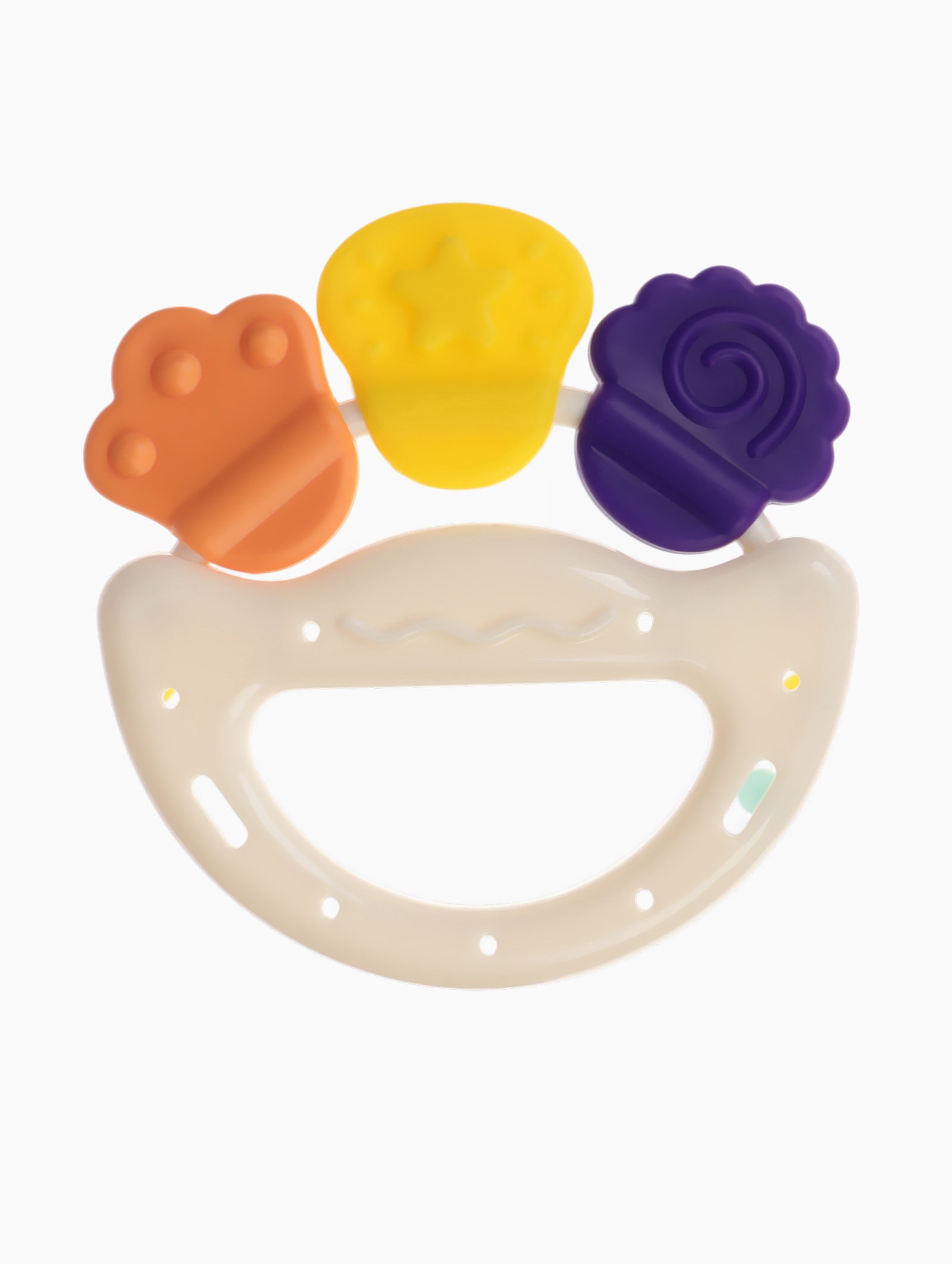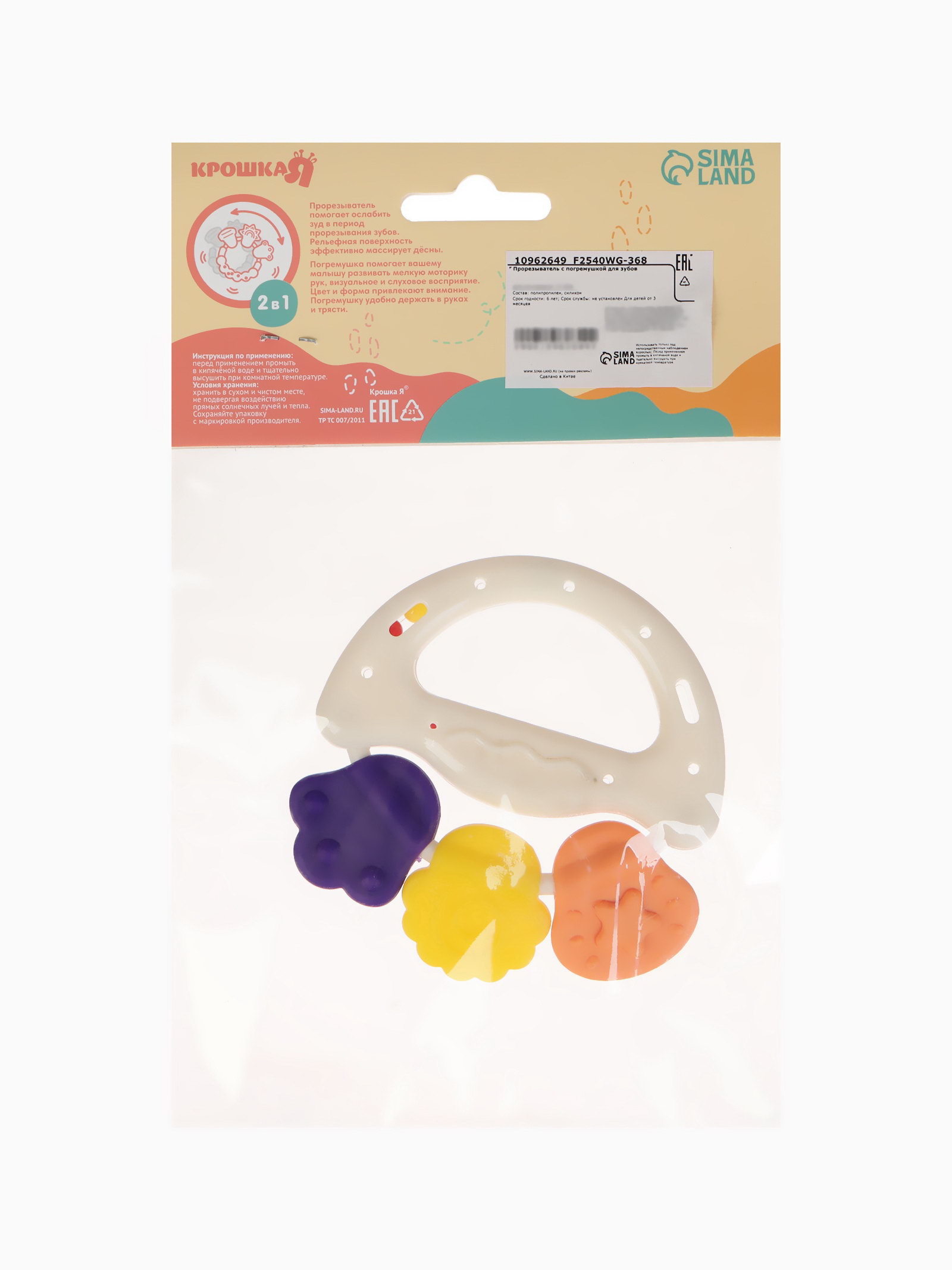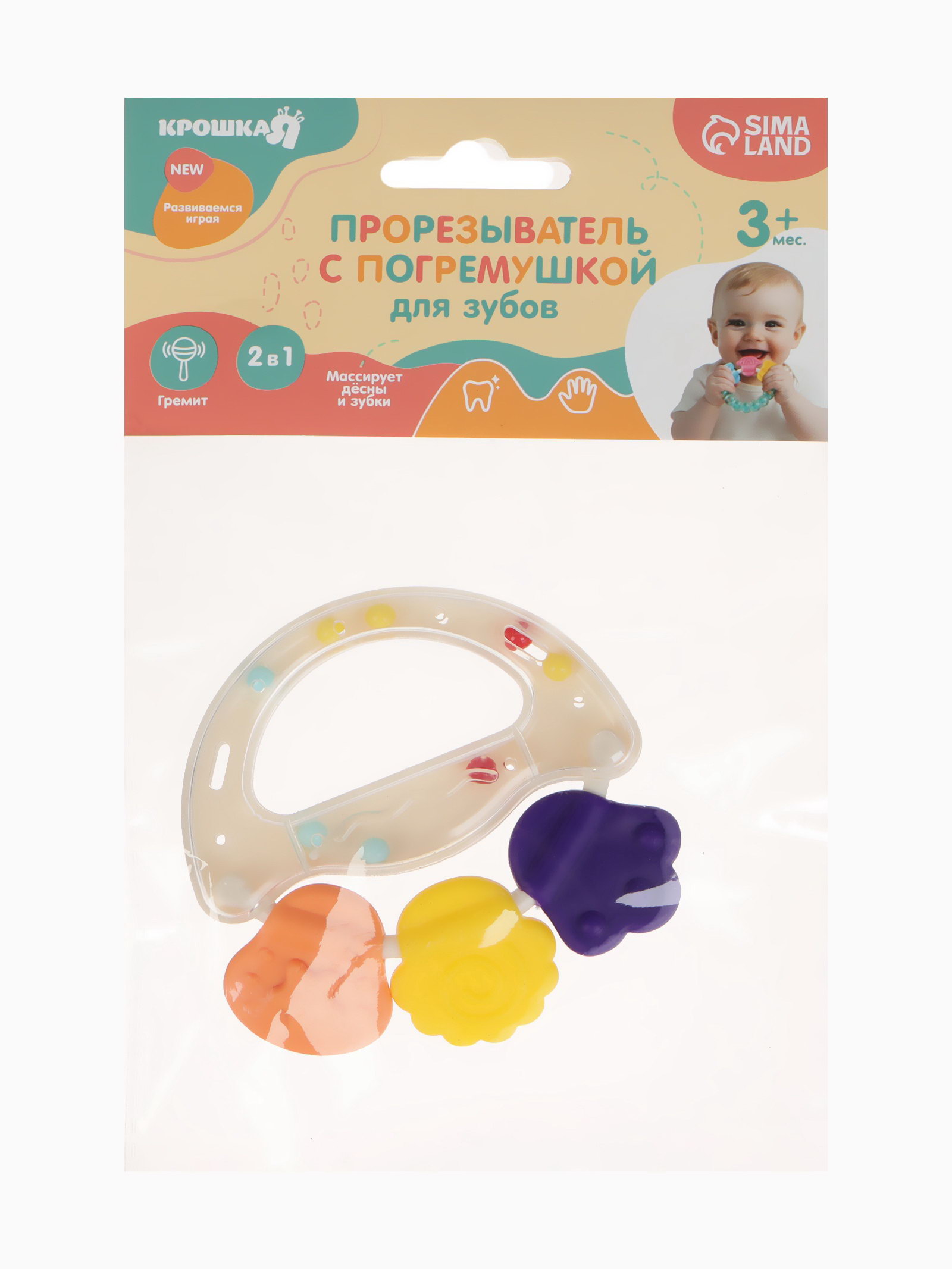 Размер упаковки: 10 x 9.5 x 10 см. tnved: 3926909700 Цвет: Бежевый Охлаждающий: Нет Возраст: От 3 месяцев Набор: Нет Для кого: Унисекс Прорезыватель с погремушкой для зубов это удобный и многофункциональный аксессуар для малышей в период прорезывания зубов. Он сочетает в себе сразу две функции: мягкий силиконовый прорезыватель и погремушку, которая привлекает внимание ребёнка и стимулирует интерес к игре. Изделие выполнено из безопасного пищевого силикона, который можно грызть и даже кипятить для стерилизации. Рельефные элементы помогают бережно массировать дёсны, снижая дискомфорт, а встроенные шарики создают мягкий и приятный звук при движении. Особенности
