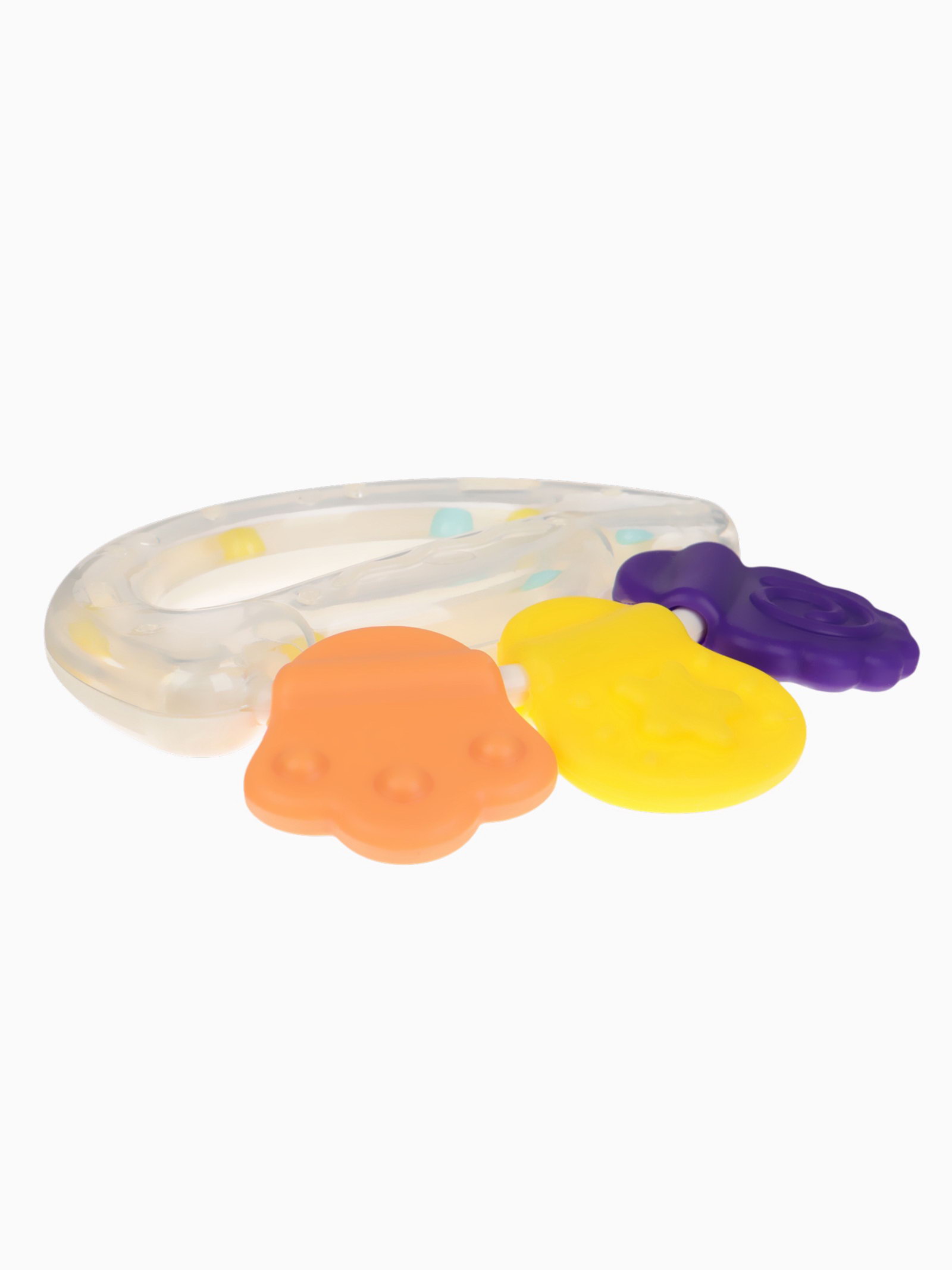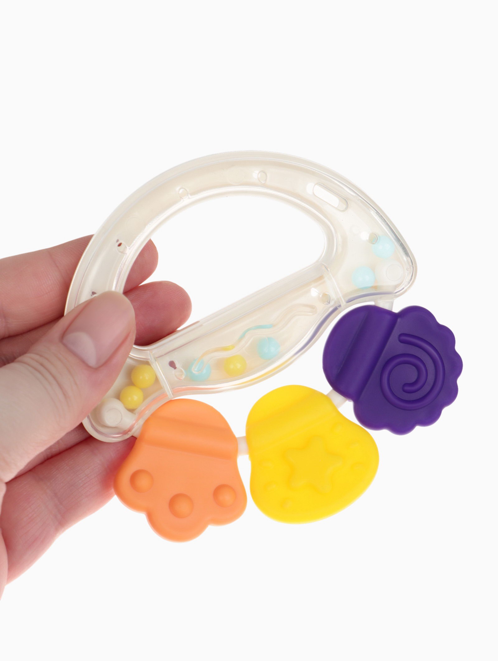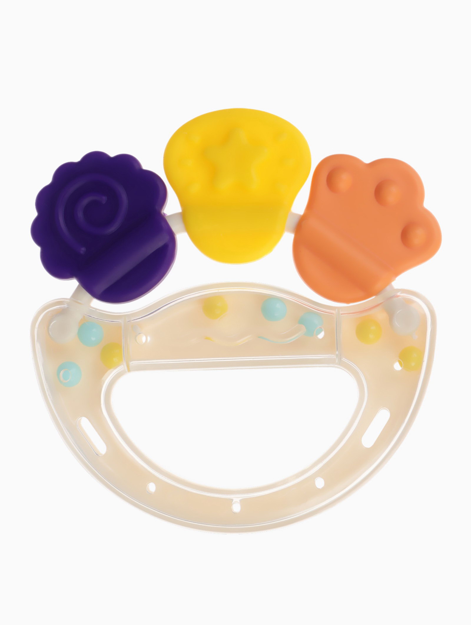 Размер упаковки: 10 x 9.5 x 10 см. tnved: 3926909700 Цвет: Бежевый Охлаждающий: Нет Возраст: От 3 месяцев Набор: Нет Для кого: Унисекс Прорезыватель с погремушкой для зубов это удобный и многофункциональный аксессуар для малышей в период прорезывания зубов. Он сочетает в себе сразу две функции: мягкий силиконовый прорезыватель и погремушку, которая привлекает внимание ребёнка и стимулирует интерес к игре. Изделие выполнено из безопасного пищевого силикона, который можно грызть и даже кипятить для стерилизации. Рельефные элементы помогают бережно массировать дёсны, снижая дискомфорт, а встроенные шарики создают мягкий и приятный звук при движении. Особенности