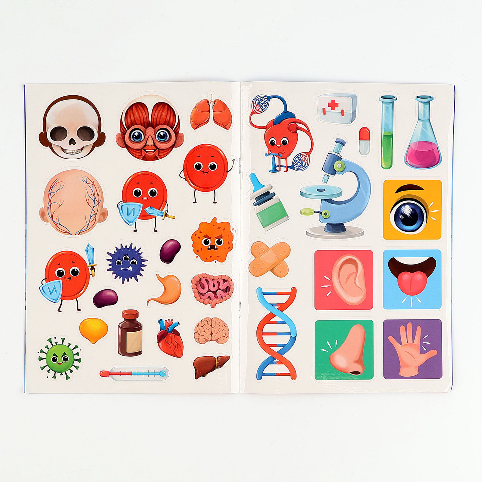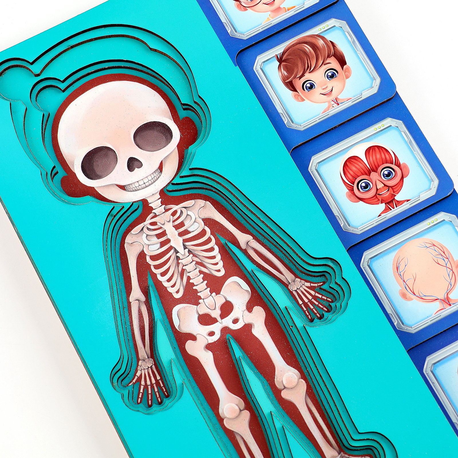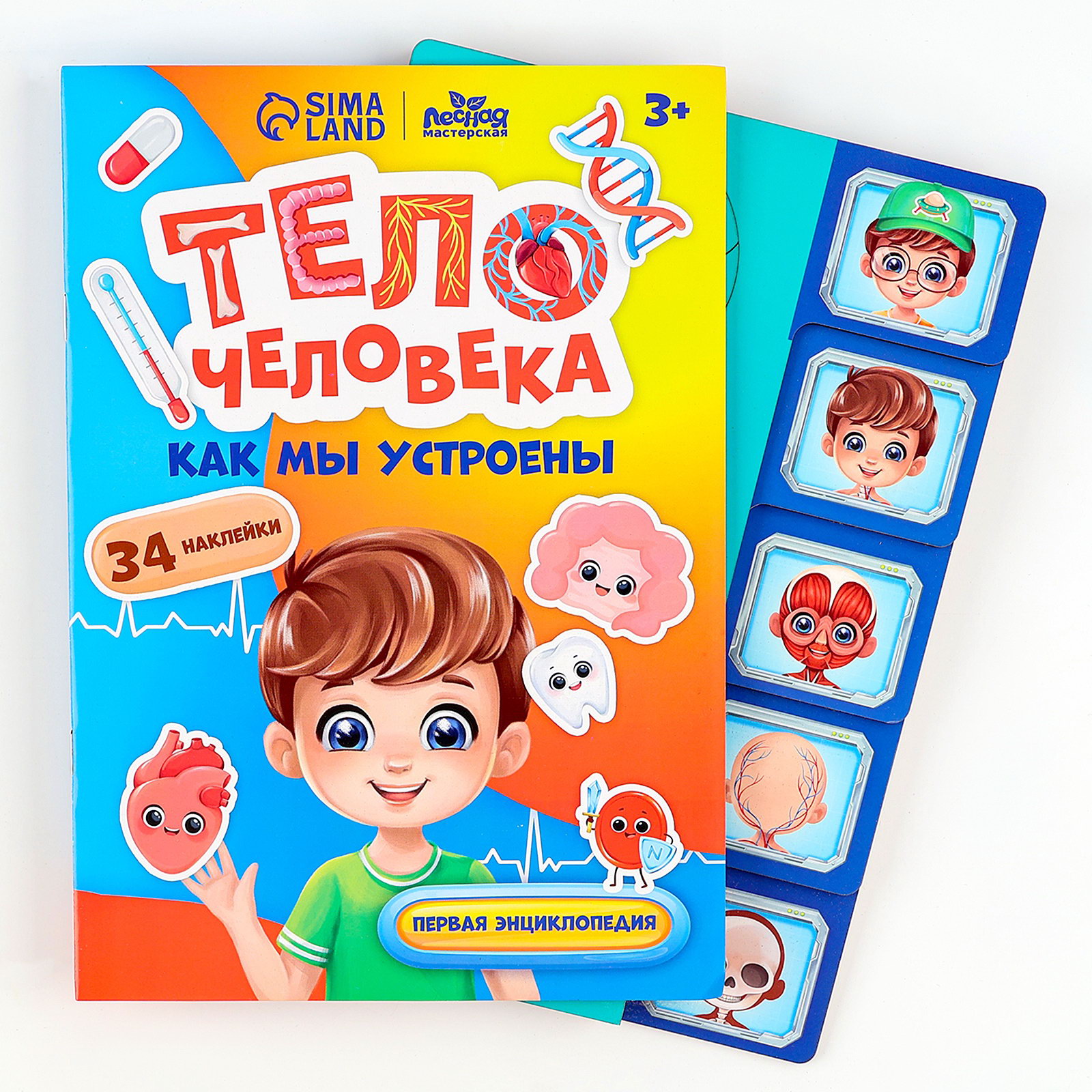 Обучающий набор "Тело человека", рамка-вкладка и книга с наклейками, Лесная мастерская, Китай