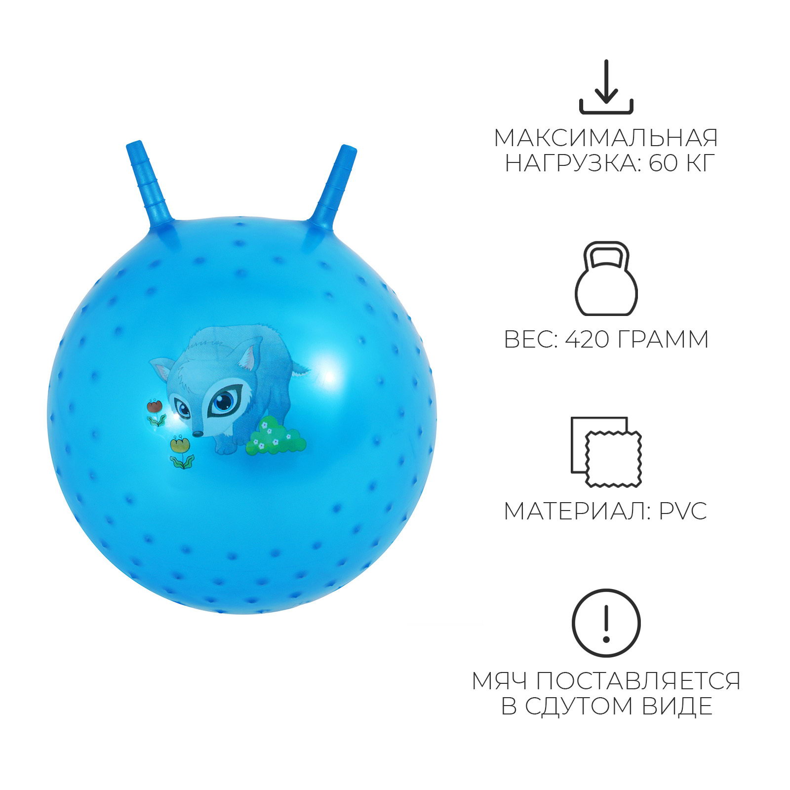 Размер упаковки: 17 x 8 x 17 см. Рисунок: Да Вес, г: 420 Для кого: Унисекс tnved: 9503010000 tnved: 9503010000 Тип мяча: Массажный Вид: С рожками Цвет: МИКС Maксимальная нагрузка, кг: 60 Возраст: От 3 лет Мяч-попрыгун поможет вашему ребенку укрепить мышцы спины, сформировать правильную осанку, развить вестибулярный аппарат. Прыгая на таком мячике, ребенку придется контролировать свое равновесие, тем самым развивая мышечный корсет и оптимизируя двигательную активность. Особенности: