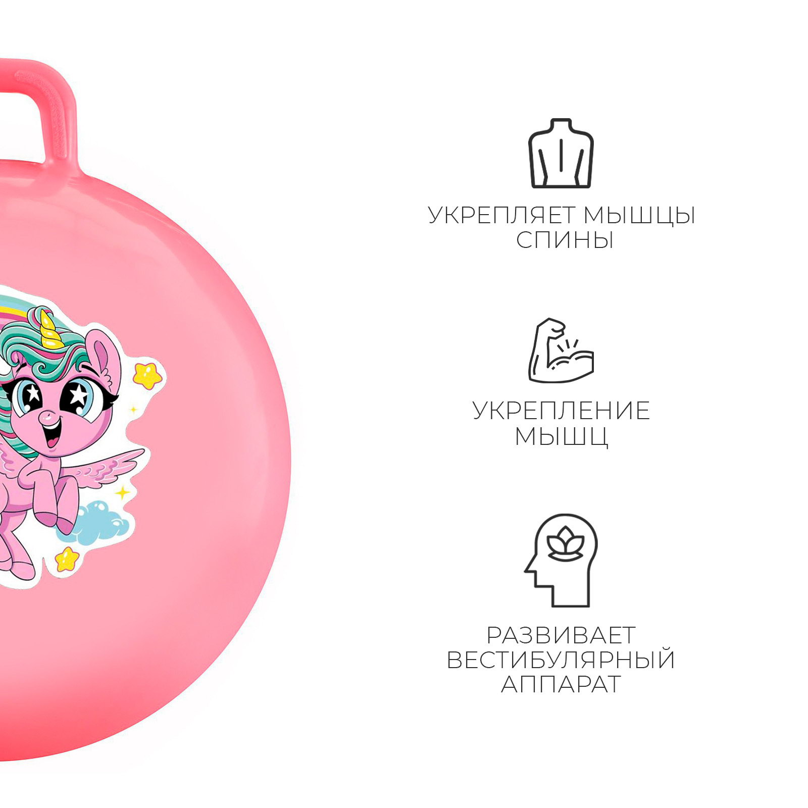 Мяч - прыгун с ручкой ZABIAKA "Единорожка", d=55 см, розовый, 55х55х55 см., ONLYTOP, Китай